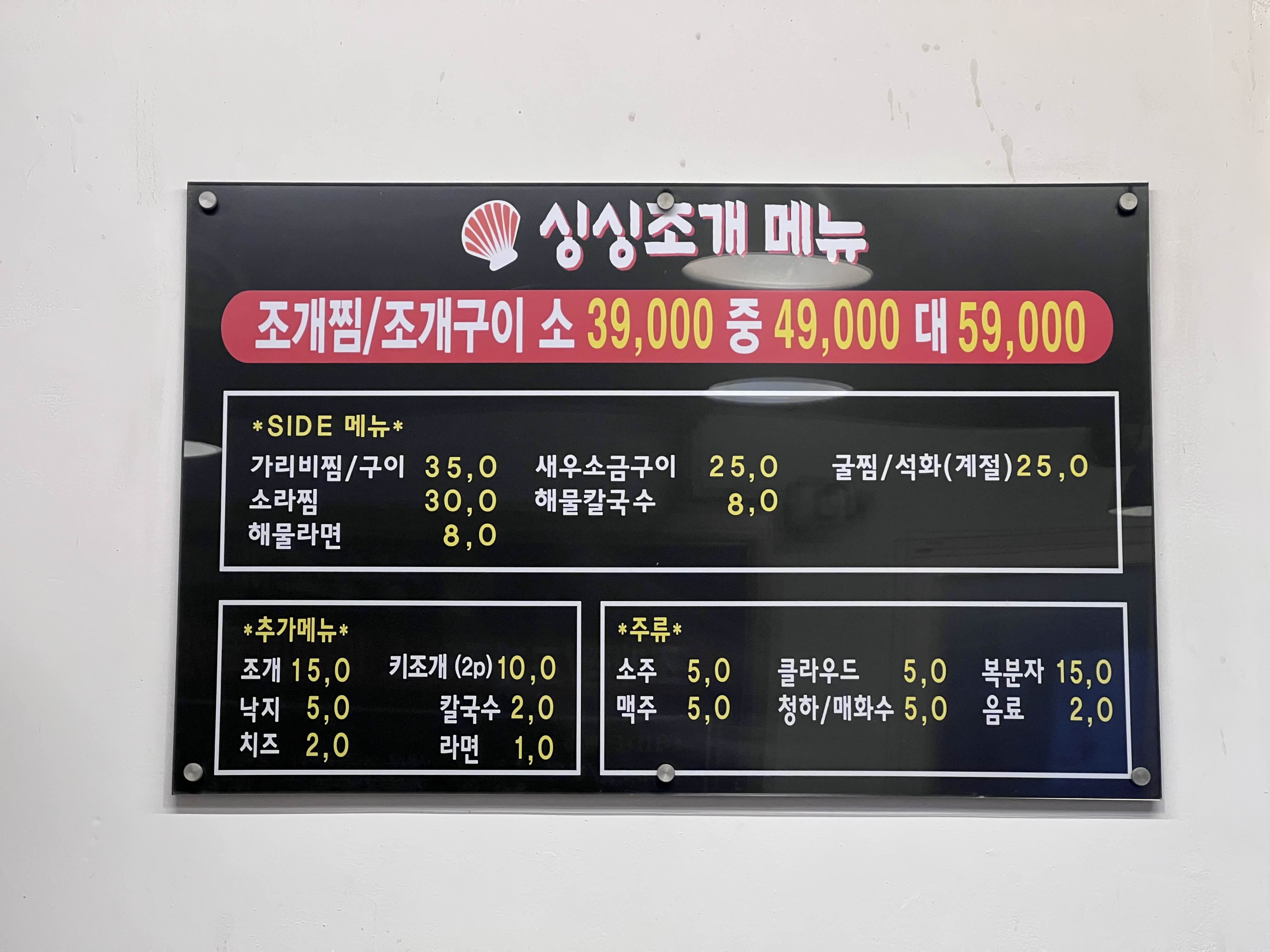 저희는 조개구이 4인분과 나중에 해물라면과 칼국수를 시켜서 마무리했습니다. 4인이서 방문했기 때문에 주문하실 때 참고하시기 바랍니다. 마지막에 국물을 또 마셔줘야 마무리가 되는 느낌이기 때문에 꼭 라면이나 칼국수를 드셔보세요.