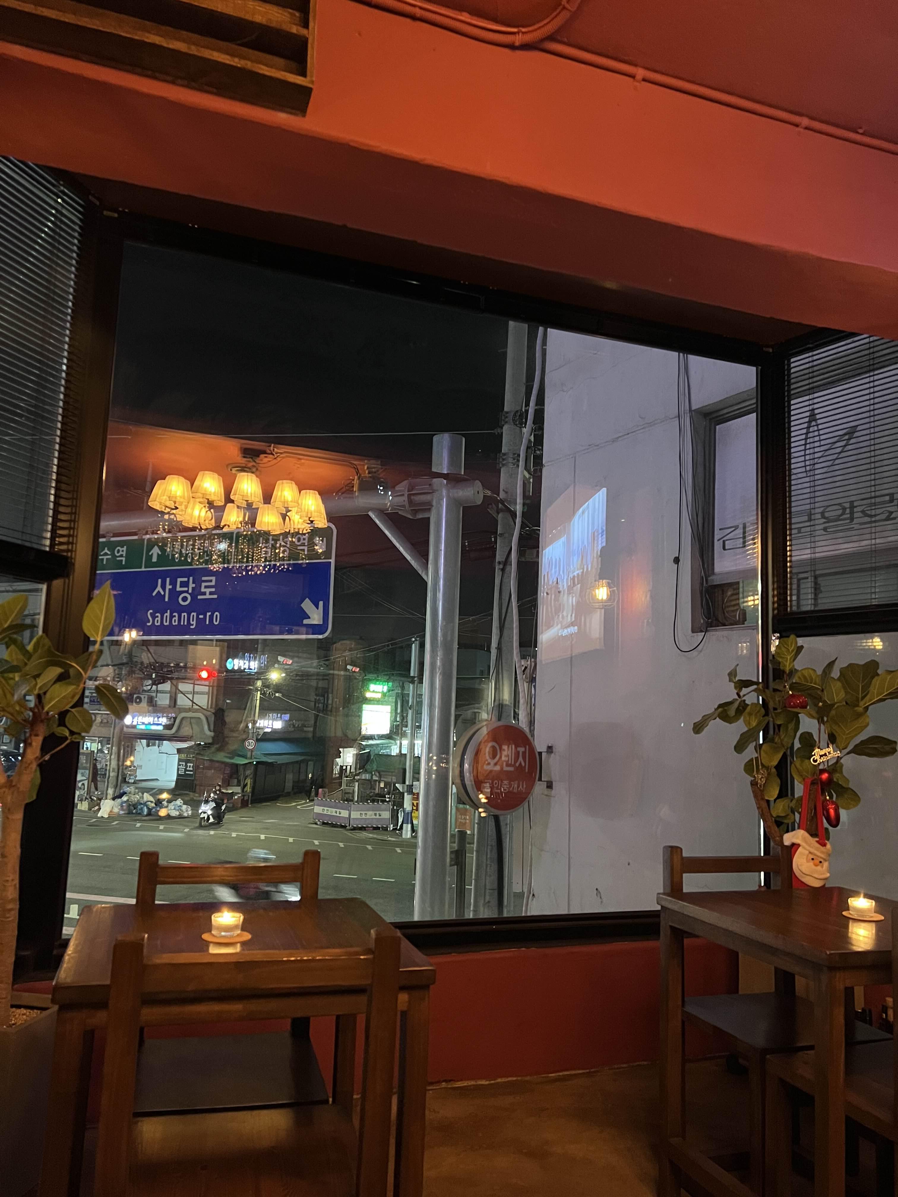 그리고 이렇게 큰 창이 있어서 밖도 잘 보이고 좋아요. 저희는 4명이서 가서 저 자리에 앉을 수 없었지만 두 명이서 가거나 요청해서 테이블을 붙여서 앉을 수도 있을 것 같습니다. 커플들이나 동성친구끼리 간다면 저런 자리에 앉으면 좋을 것 같습니다. 저희가 갔을 때는 남자 2명, 여자 2명, 커플, 그리고 저희 4명 이렇게 있었는데 대게 모두 젊은 사람들이었습니다. 남성역에 사시거나 방문하시는 분들은 추천드려요.