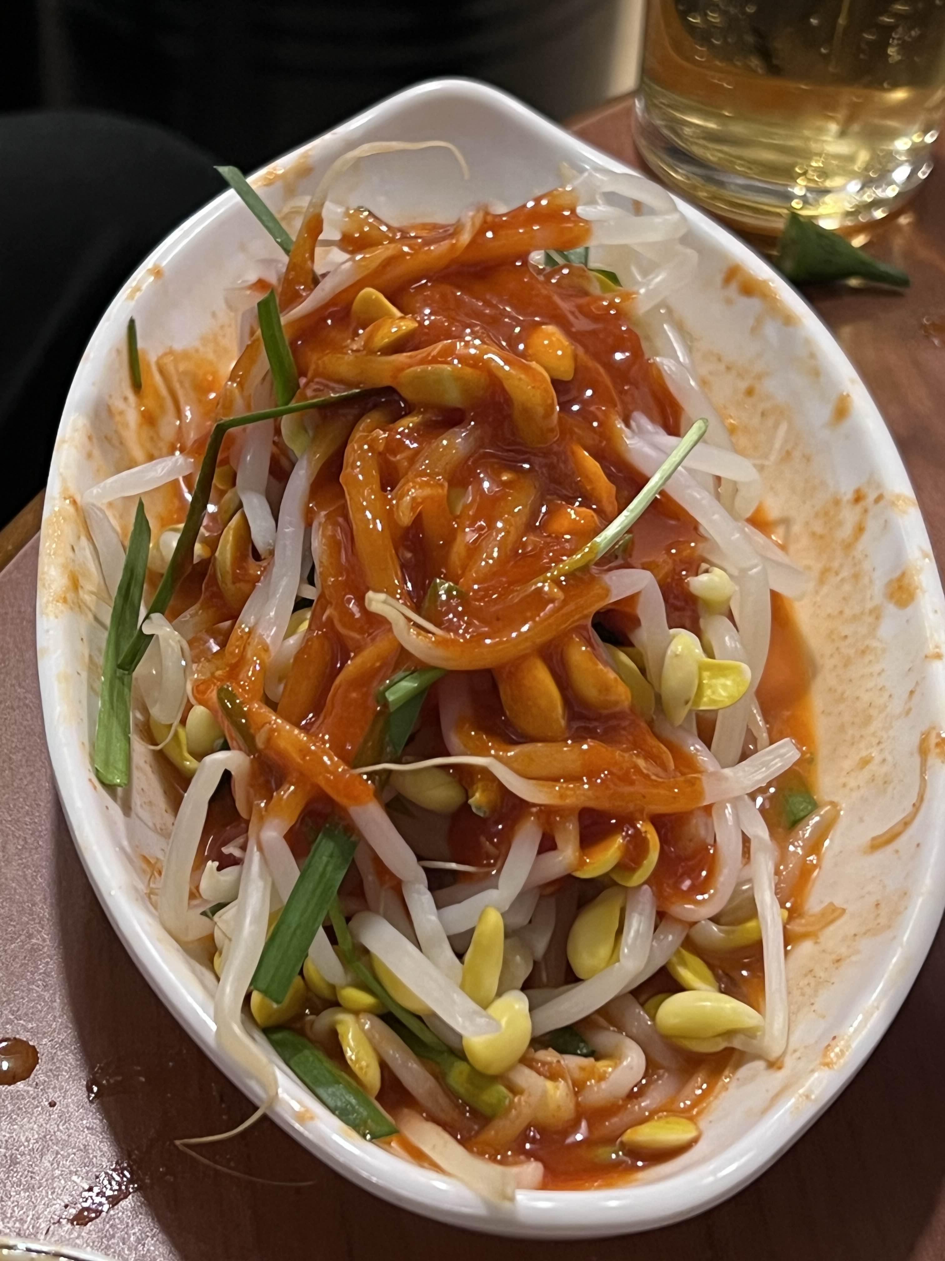 대구막창집에는 막장을 주시는데 막장에 콩나물무침을 넣어서 같이 먹으라고 안내해주신다. 콩나물은 또 달라고 하면 푸짐하게 얼마든지 주시니까 아껴먹지 말고 팍팍 넣어 먹으면 된다. 인심이 좋은 식당이다.