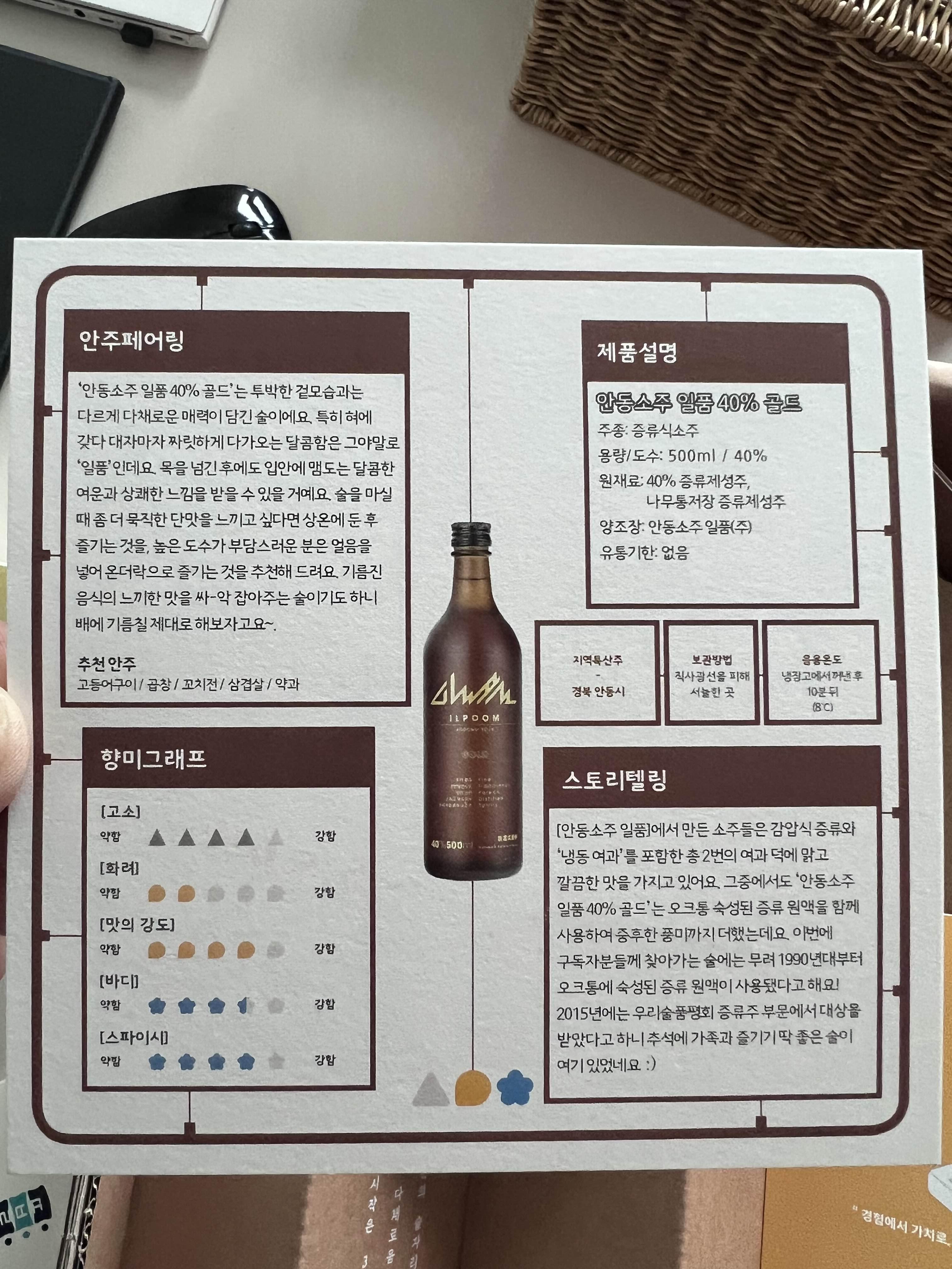 각 술에 대한 안내용 리플릿이 들어있어서 술 마시기 전에 한번 읽어보고 안주페어링이나 간단한 정보를 습득할 수 있습니다.