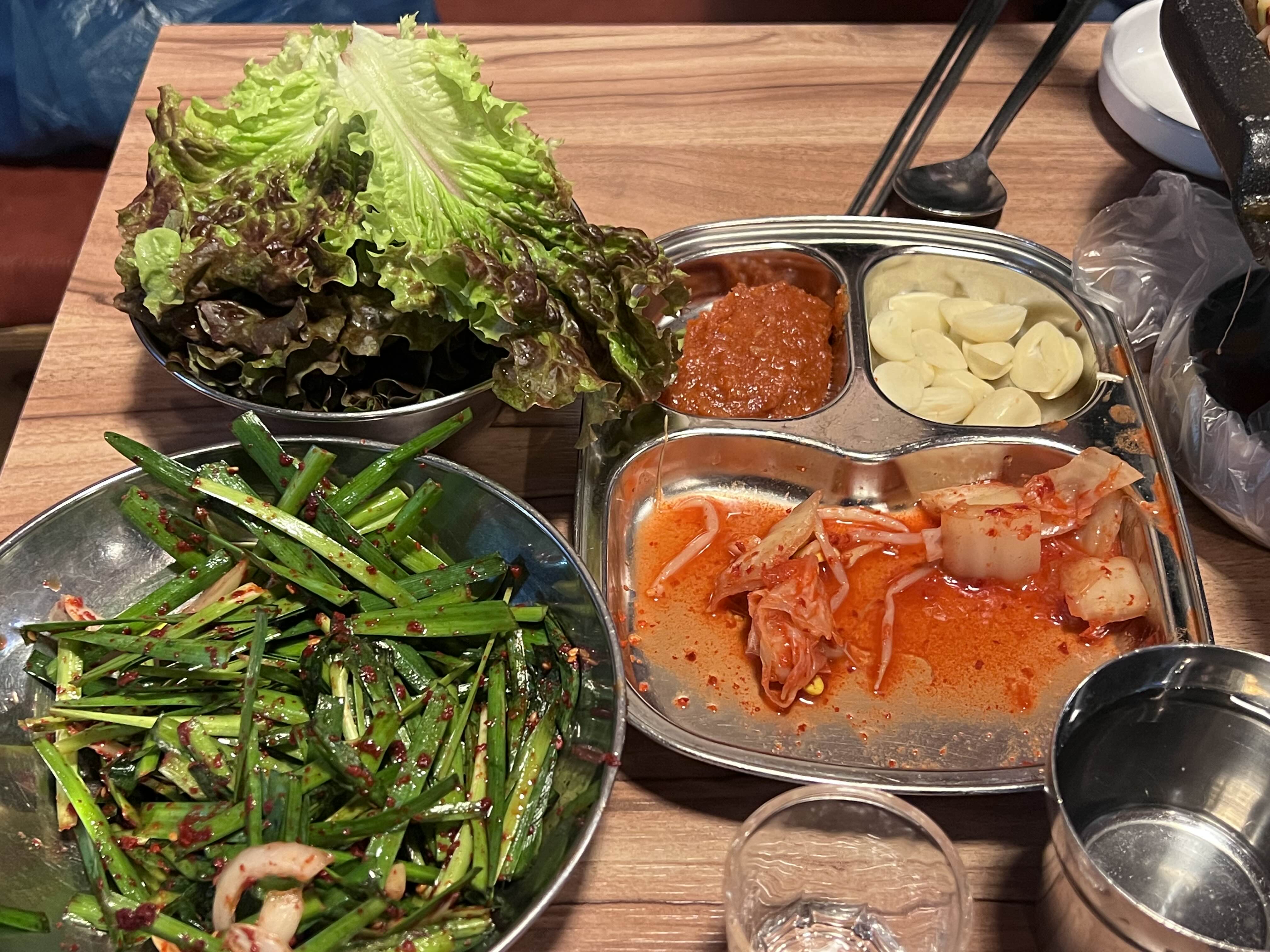 부추, 김치, 콩나물, 마늘, 상추 등은 셀프코너에서 부족하면 가져다 드시면 됩니다. 아껴드시지 마시고 팍팍 구워드세요.
