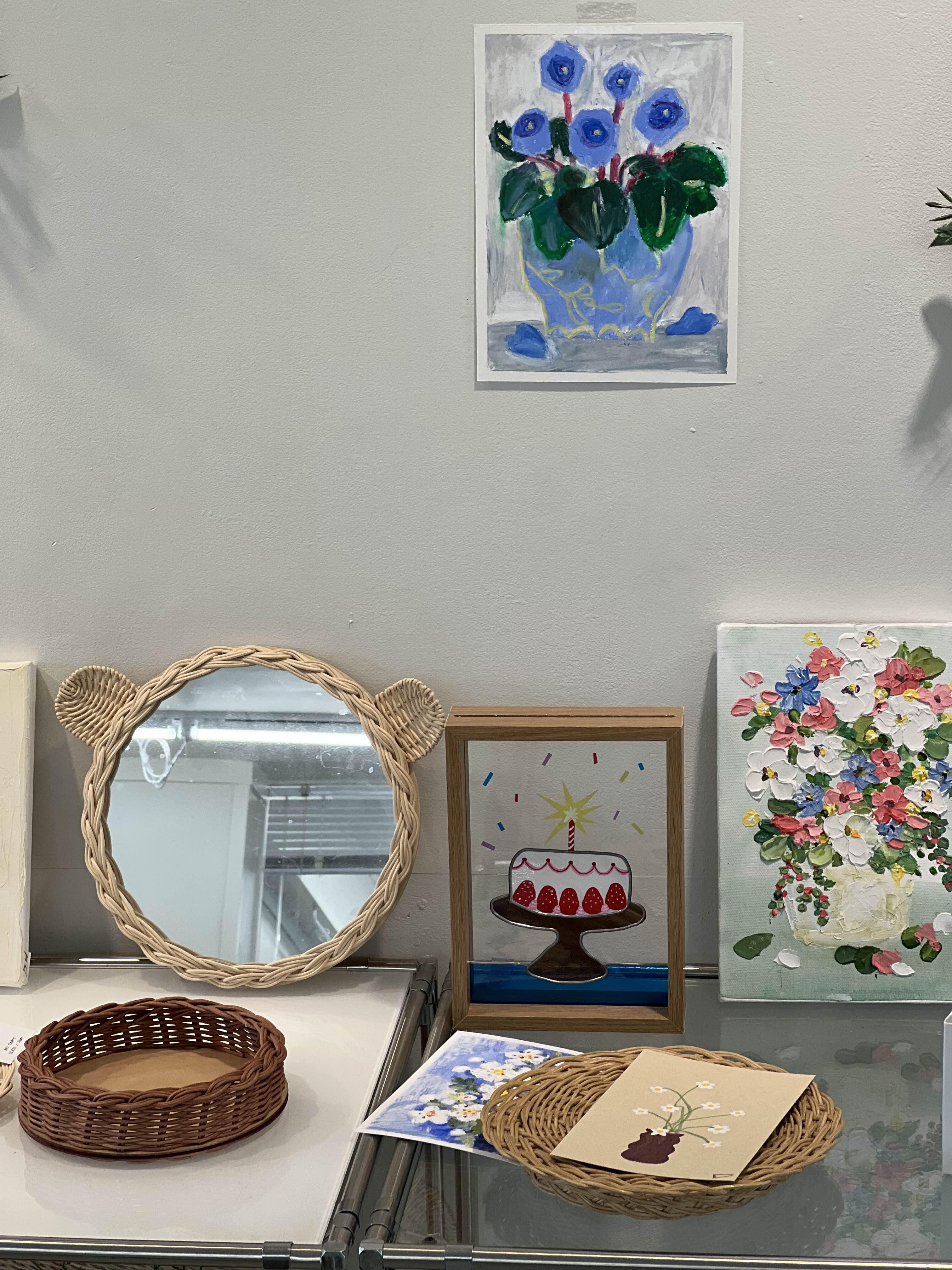 내부에는 이렇게 라탄 소품이나 화분들과 그림들이 많이 전시되어 있습니다. 공방으로 수업하기 전에 열심히 구경해봤는데 정말 이쁘고 괜찮은 것들이 많았어요. 그냥 와서 구경하시거나 시간 보내도 좋을 것 같습니다. 인테리어 소품 같은 것들도 여기서 사도 괜찮을 듯합니다.