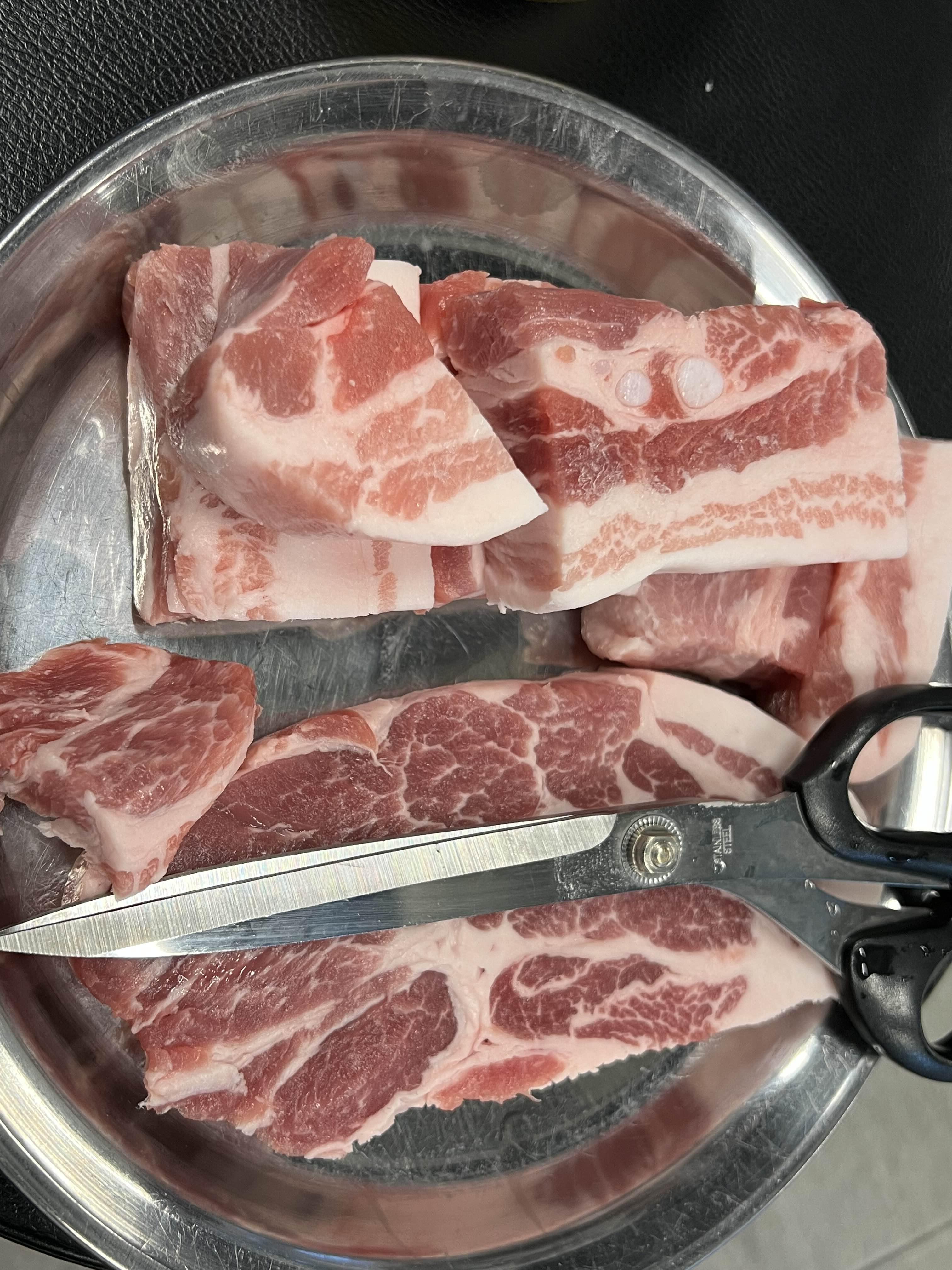 목살/삼겹살/갈매기살을 200g단위로 팝니다.