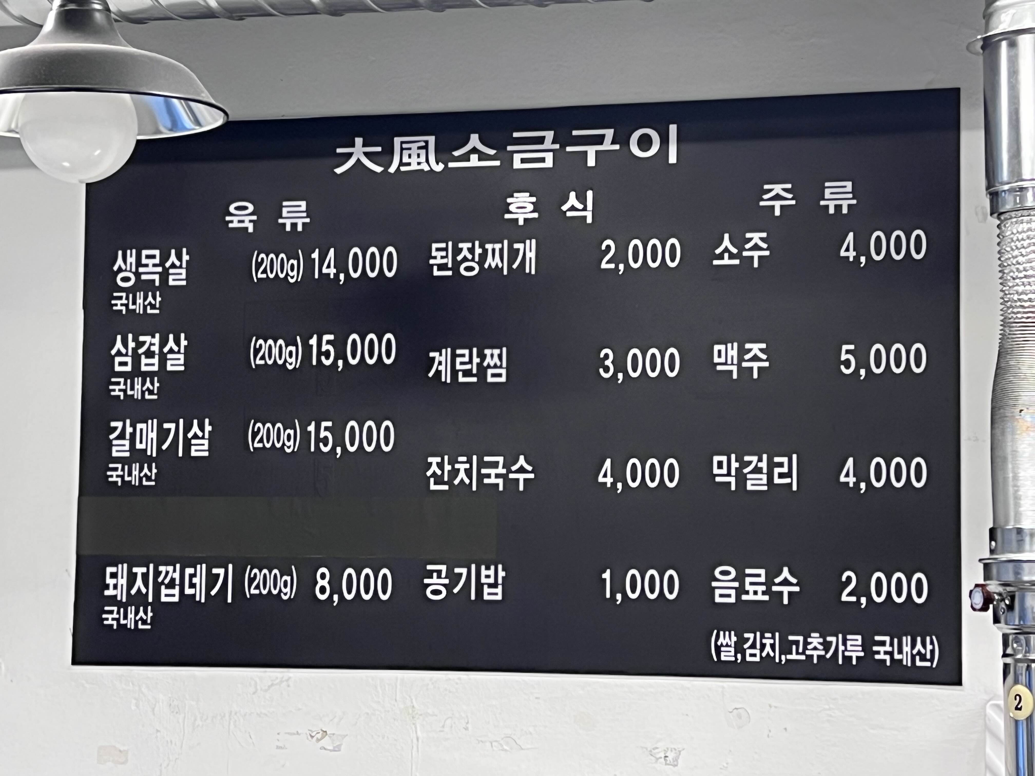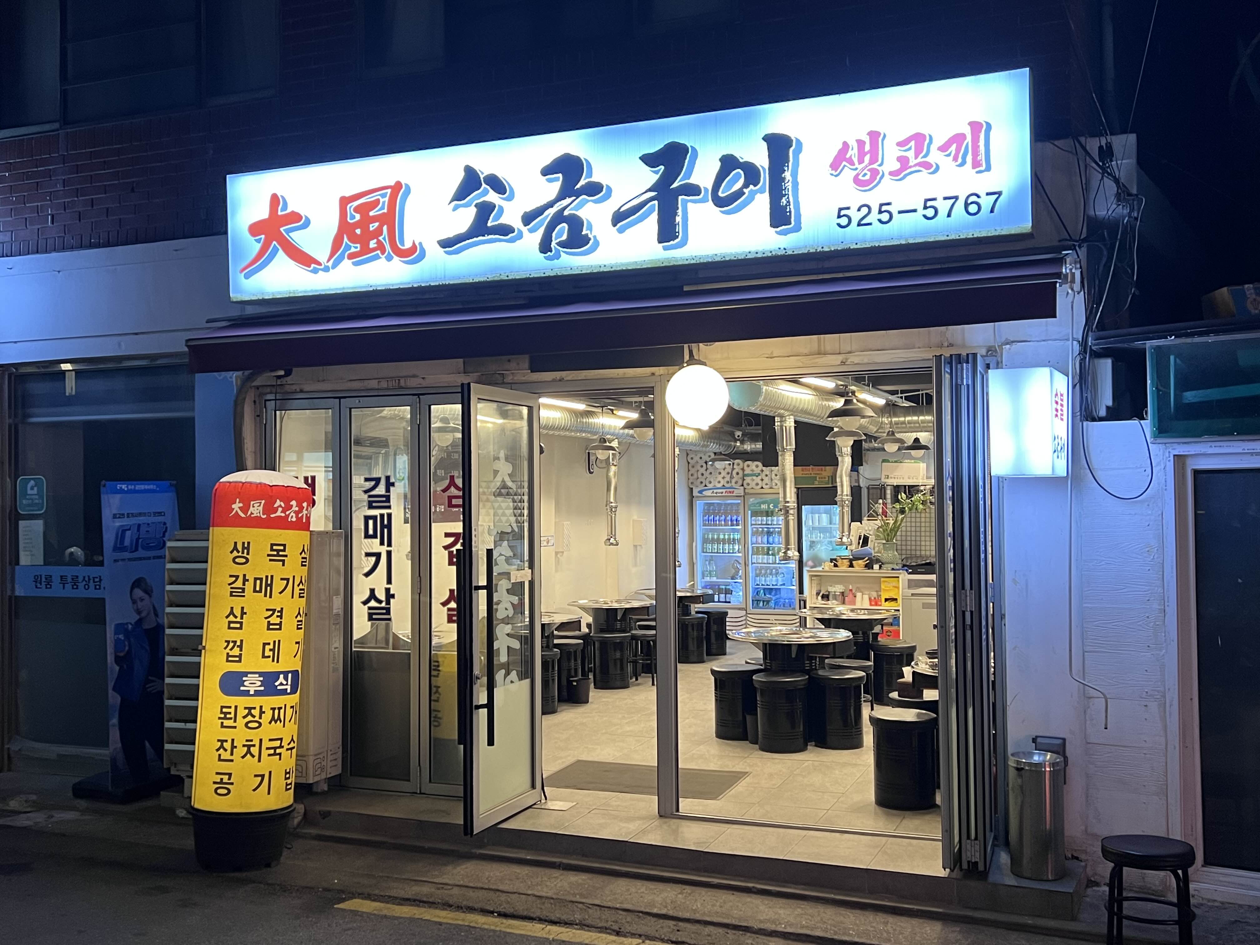 사당에서 안 가본 곳을 가보자, 맛집을 찾아보자, 세련된 곳 말고 노포느낌으로 가보자!!! 하면서 어슬렁어슬렁 다니기 시작했습니다. 찾아서 간 곳은 아니었고 골목에 언뜻 보이길래 한번 점찍어두고 돌아다니다가 노포 같은 집이 없어서 대풍소금구이로 가봤습니다. 소금구이 좋아하기도 하고 뭔가 맛집 같아 보이는 느낌이 있습니다.