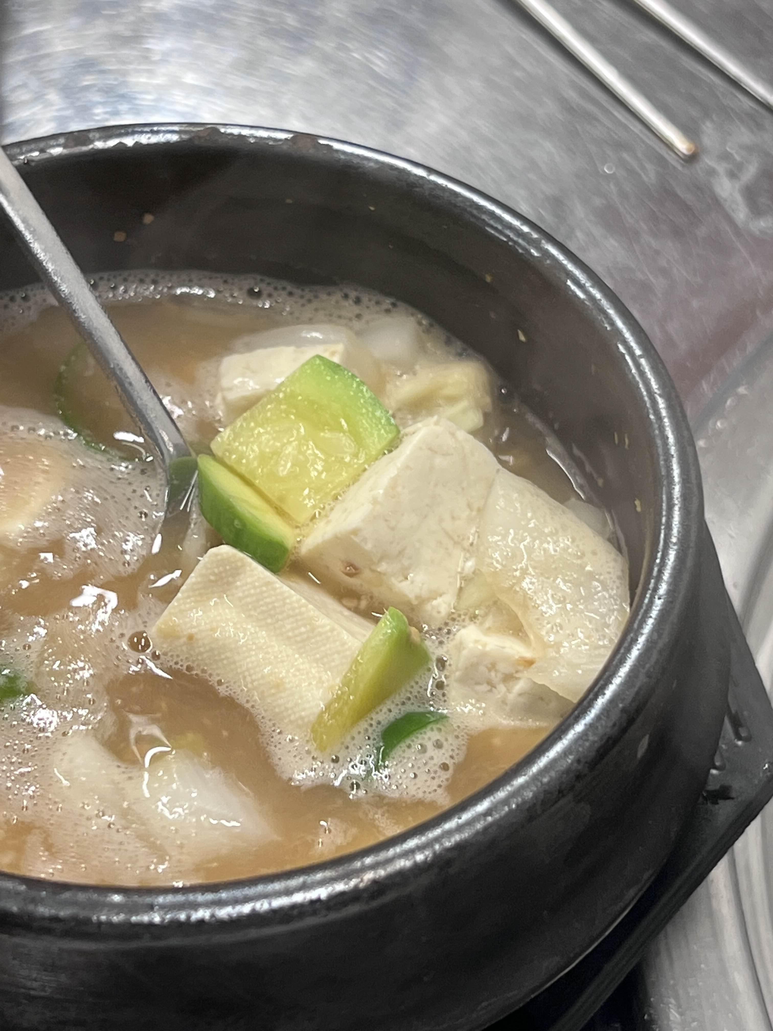 고기 먹었으니까 탄수화물도 넣어주는 게 국룰이쥬? 된장찌개 2000원밖에 안 하니까 바로 시켜서 마무리로 먹어줍니다. 된장찌개 말고도 잔치국수도 있으니까 뜨듯하게 국수를 드시는 것도 추천드립니다. 저는 아무래도 된장찌개가 당겨서 ㅎ 국수보다는 밥입니다.