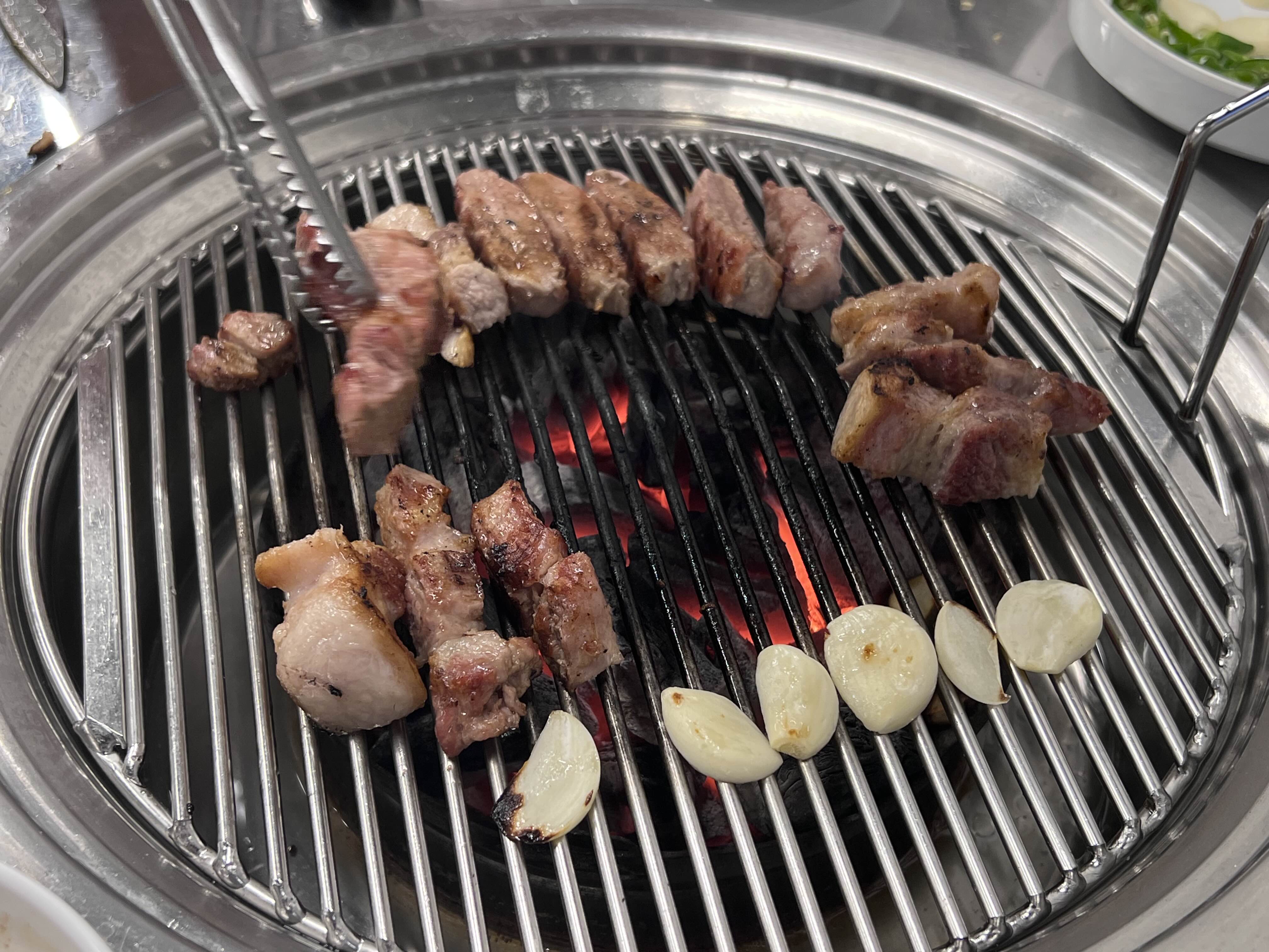 그리고 여기는 숯으로 굽는 곳이라, 더 맛있습니다. 숲으로 지글지글 구워주면 숯향으로 더 맛있게 구울 수 있습니다.