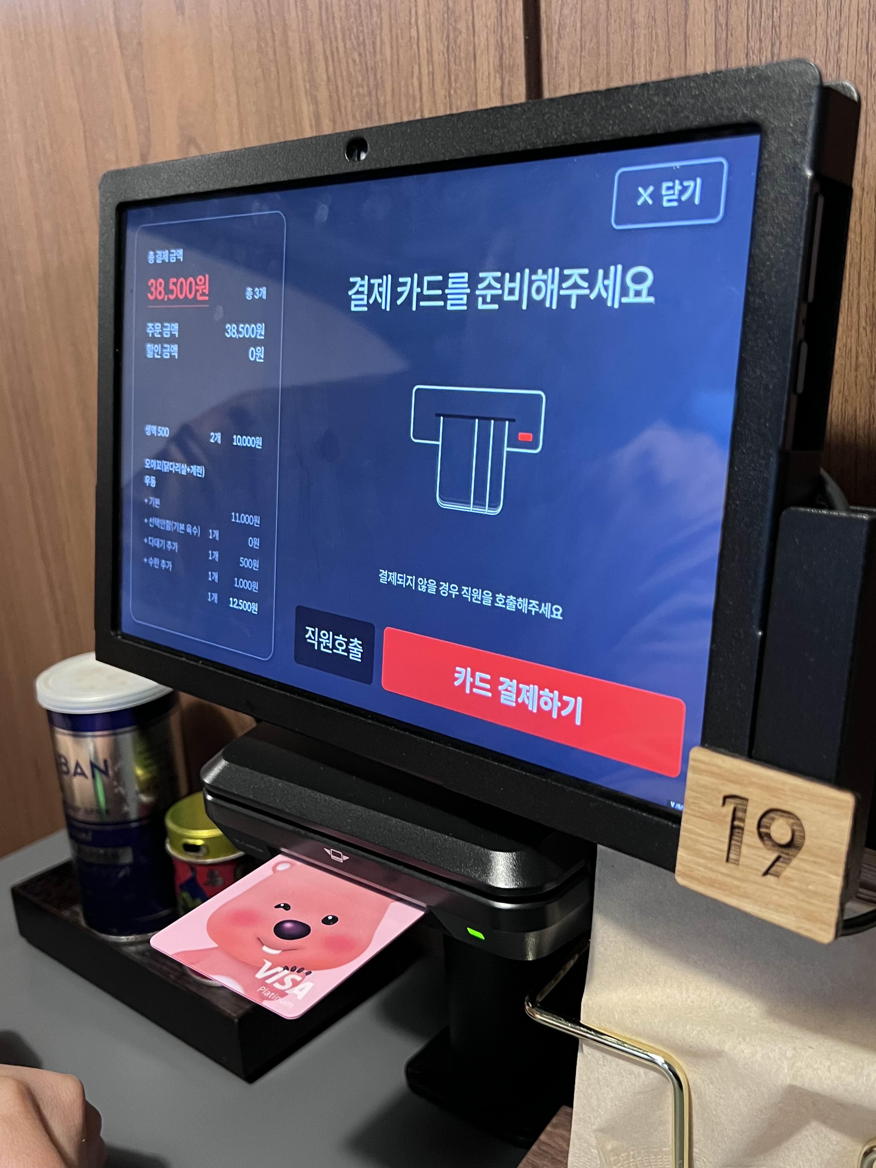 결제도 마찬가지로 자리에서 하면 바로 주문이 들어갑니다. 자리에 앉아서 다 결제하고 주문하니까 편리한 것 같습니다.