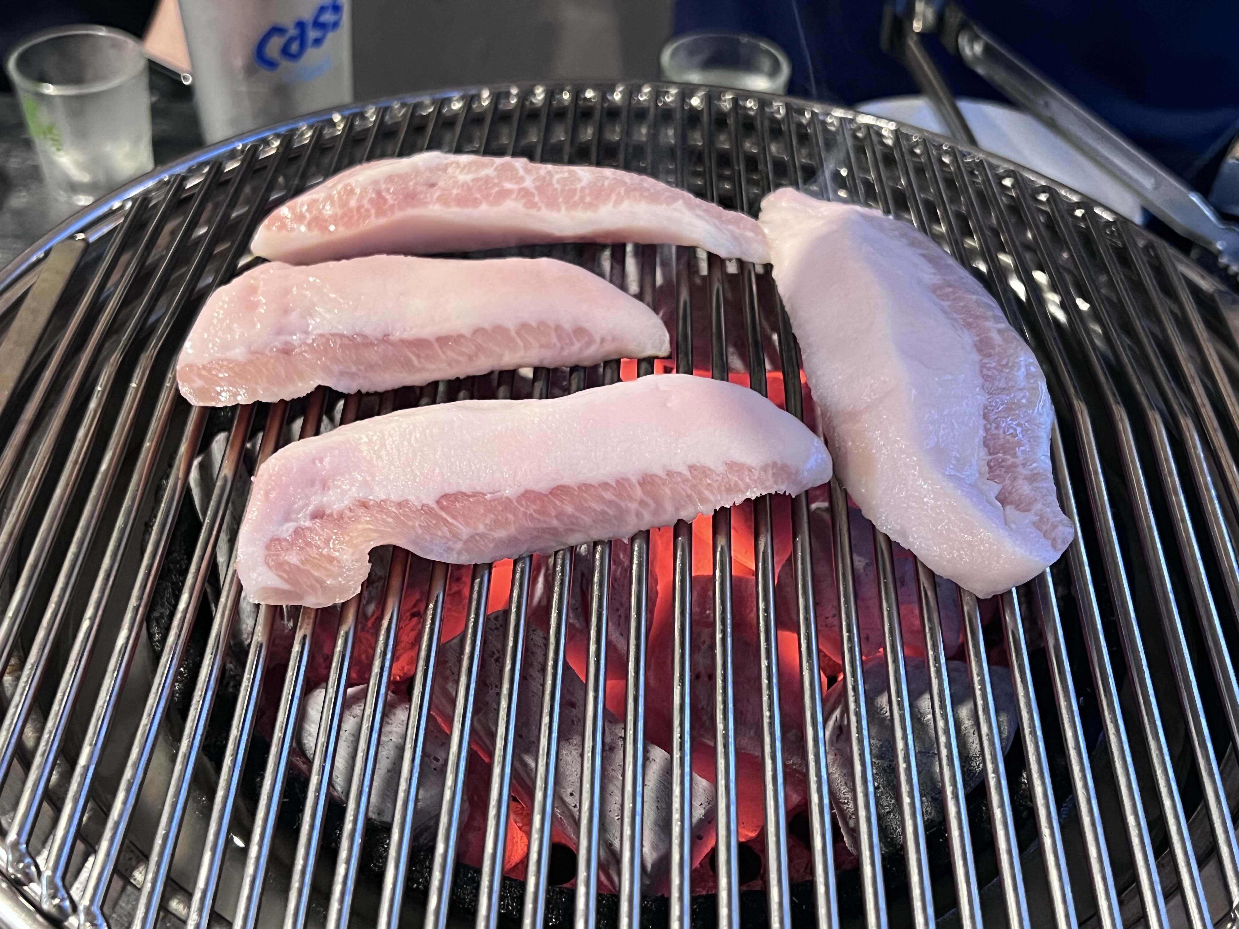 그리고 좋은 것은 숯으로 고기를 구워 먹는다는 것입니다. 숯불이 아주 냄새가 잘 배어서 좋아요.