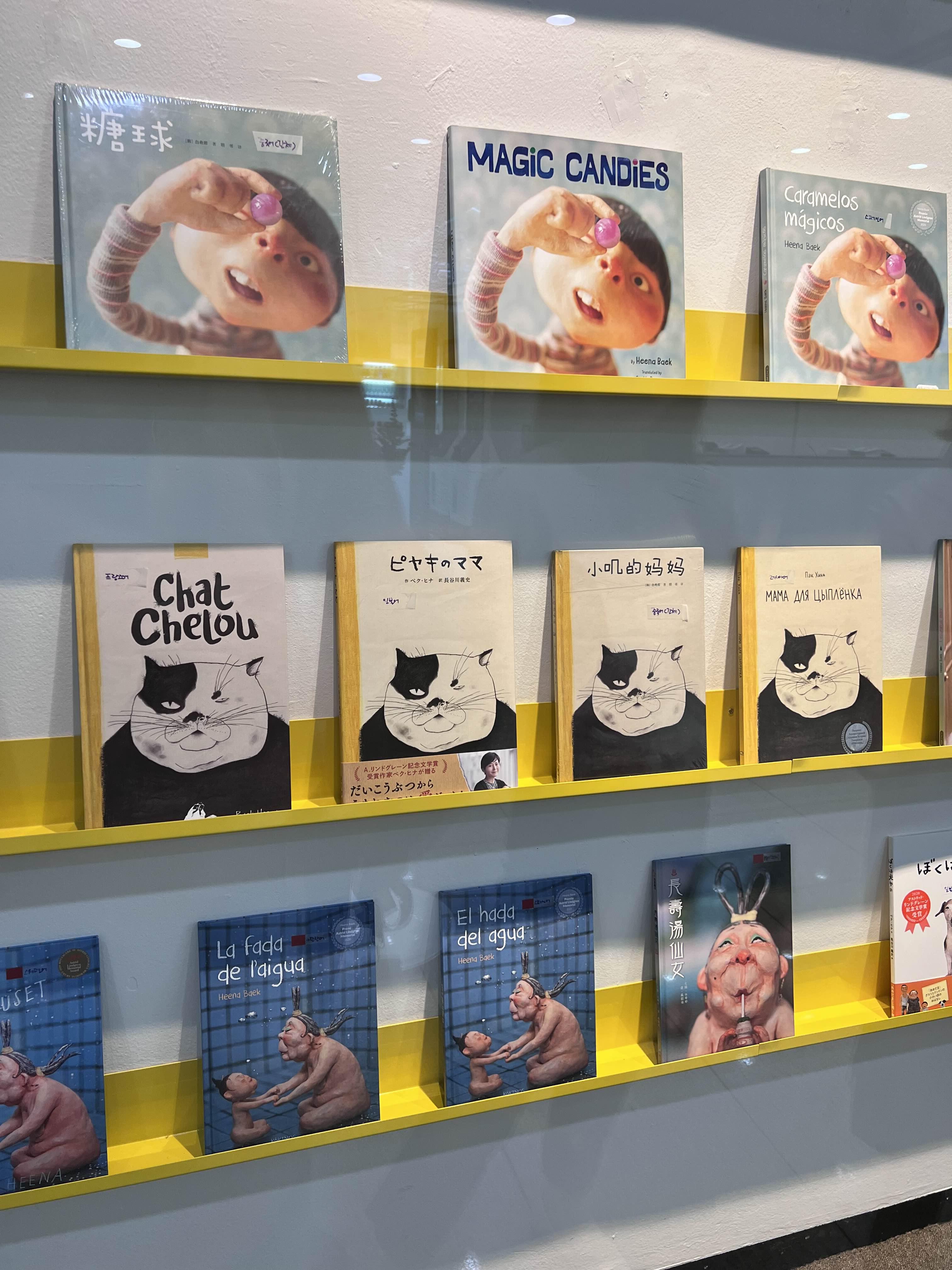 로비에는 백희나 선생님의 그림책들이 다른 언어로 번역되어 있는 책들이 전시되어 있습니다.
