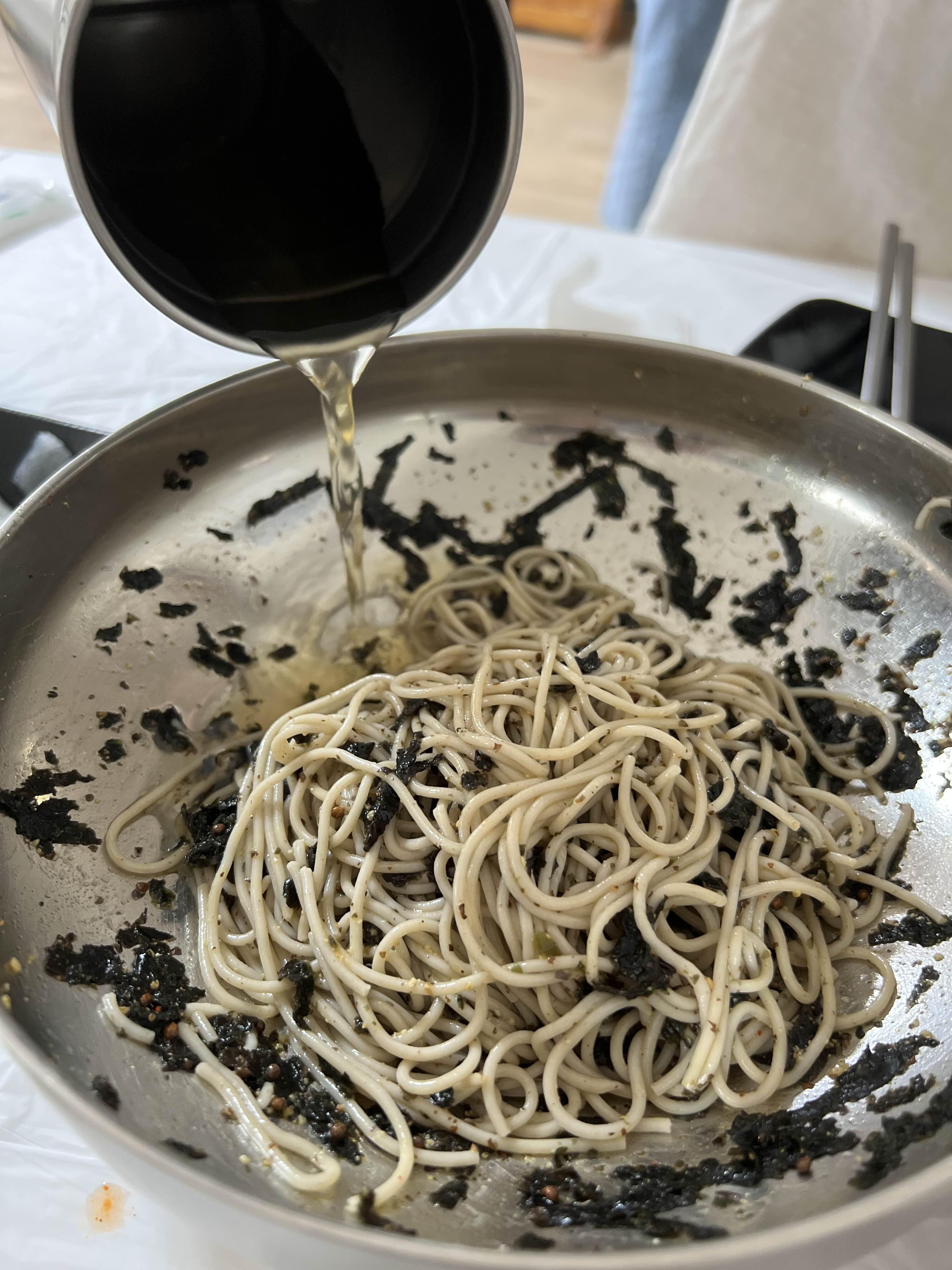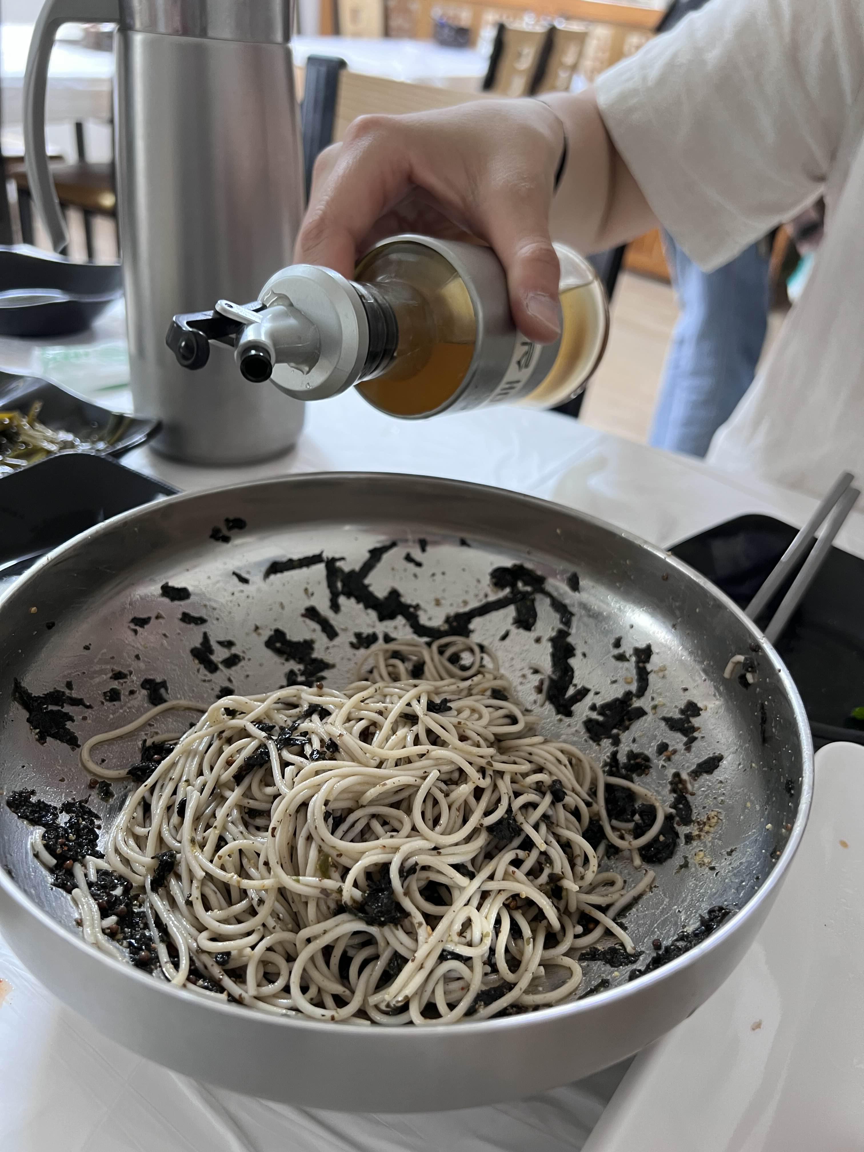 2번 방법 김가루, 들깻가루, 매실을 넣어서 드셔보세요. 김가루, 들깨가루 등이 들어가면 더 고소하고 우리가 먹던 막국수의 맛이 조금씩 납니다. 매실을 넣지 않고 드셔 보시고 그 후에 매실을 넣어서도 한번 드셔보세요. 각자 취향이 다르기 때문에 어떤 방법이 좋고 맛있다 하는 건 없습니다. 개인의 맛을 찾아가는 것 같아서 신선하고 실험적이었어요.