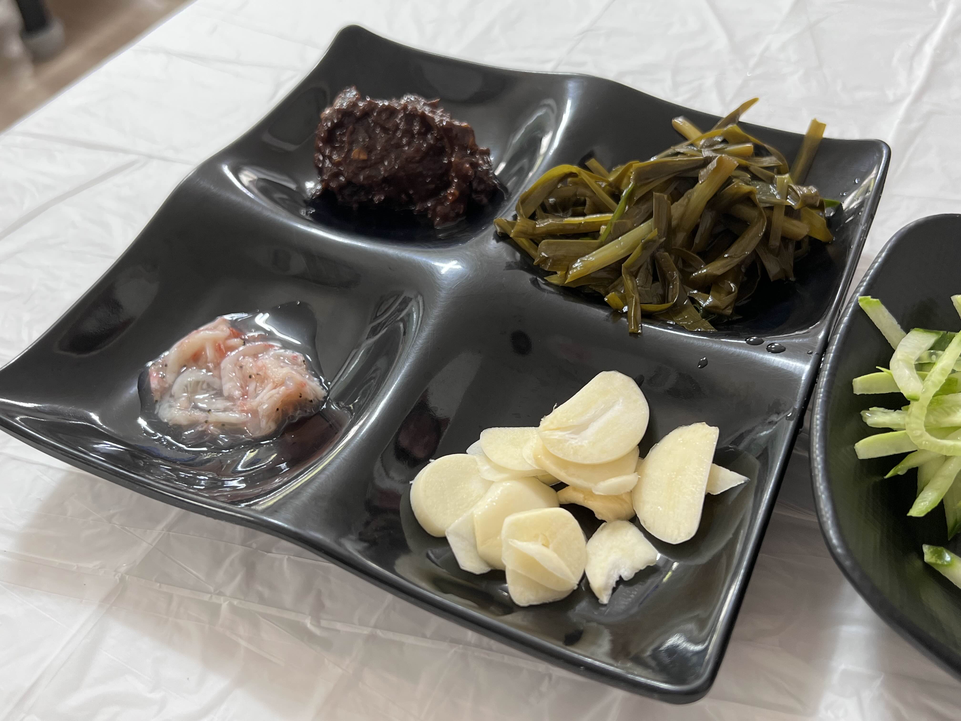 수육과 잘 어울리는 새우젓과 강원도의 된장인지 맛도 독특하고 맛있었습니다. 수육도 반찬과 같이 먹으니 그렇게 느끼하진 않습니다. 쌈으로 드셔도 좋고, 국수랑 같이 먹어도 너무 잘 어울렸습니다.