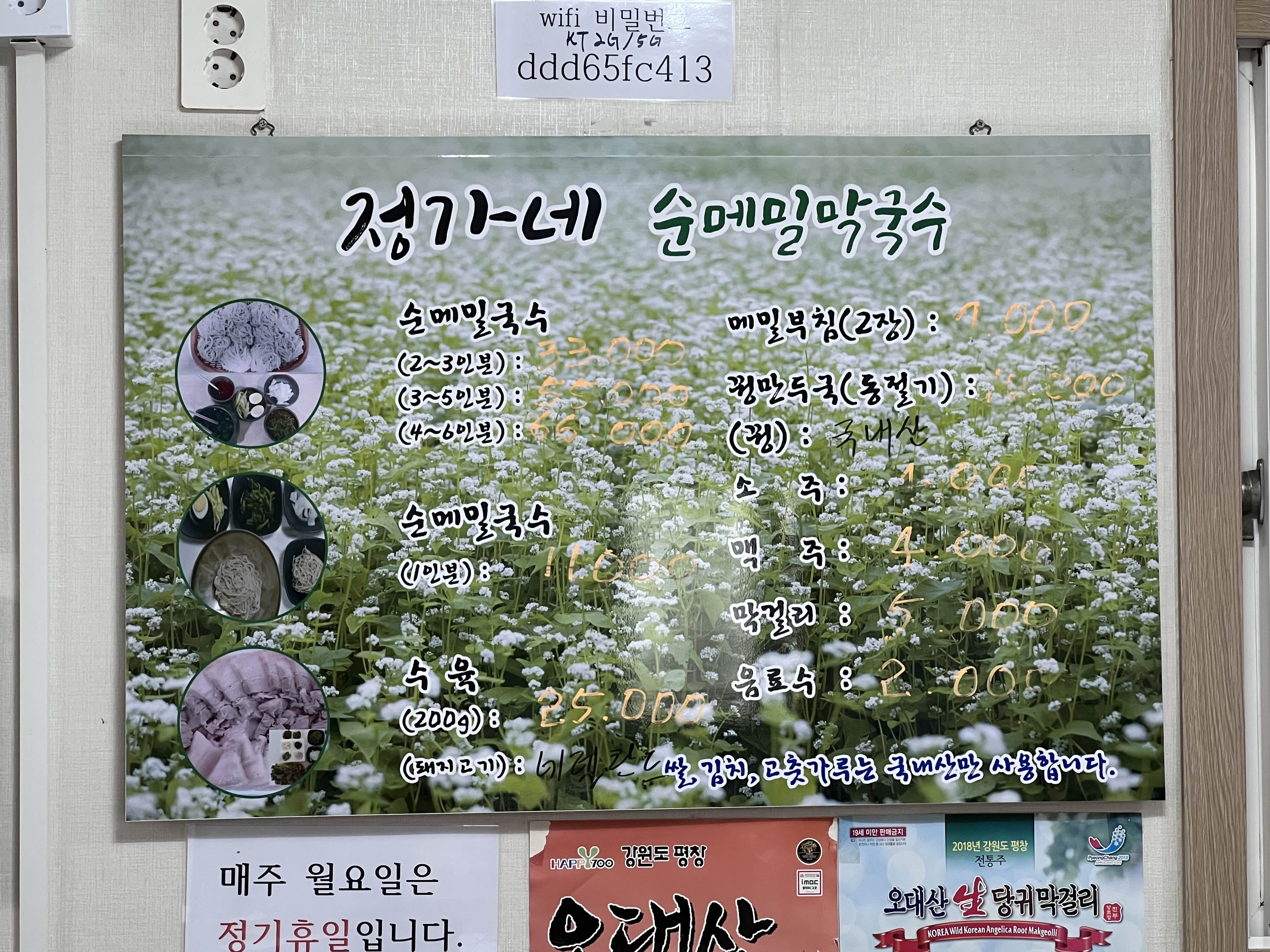 저희는 2인이서 방문했고, 순메밀국수 1인분과 수육을 주문했습니다.3인이상 가신다면 더 많은 메뉴를 한번 드셔보세요. 2인으로 가서 많은 것을 못 먹어본 게 아쉽습니다. 가족끼리 평창에 놀러 온다면 와도 좋을 곳입니다. 아이들도 메밀면을 잘 먹고 양념을 많이 치지 않으니 건강하고 좋을 것 같아요!