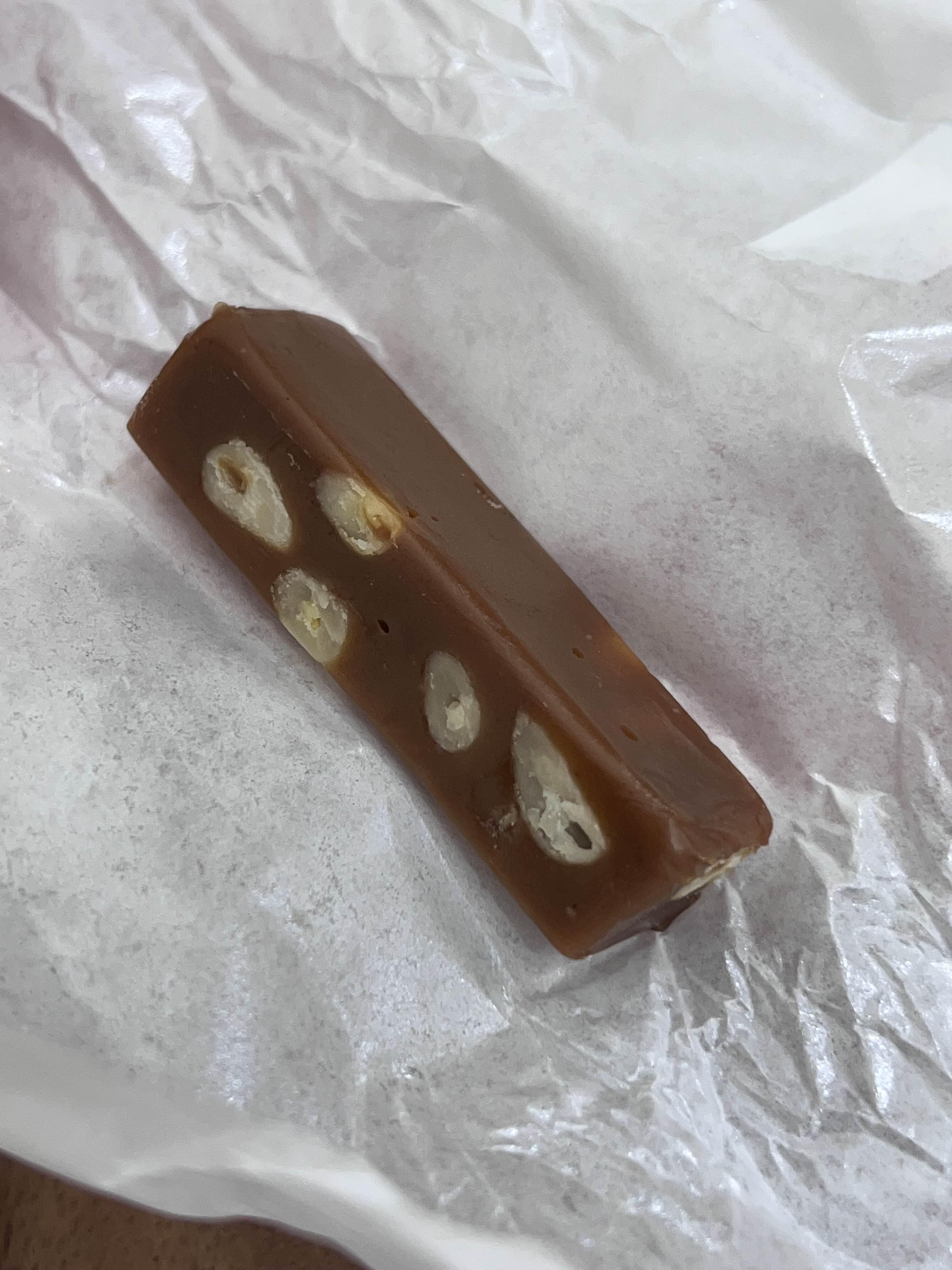 잣 카라멜도 입안에서 살살 먹고 찐득하지 않아서 이에 잘 붙거나 죽죽 늘어나지 않아요. 잣이 정말 눈에 보이게 박혀 있어서 좋았습니다.