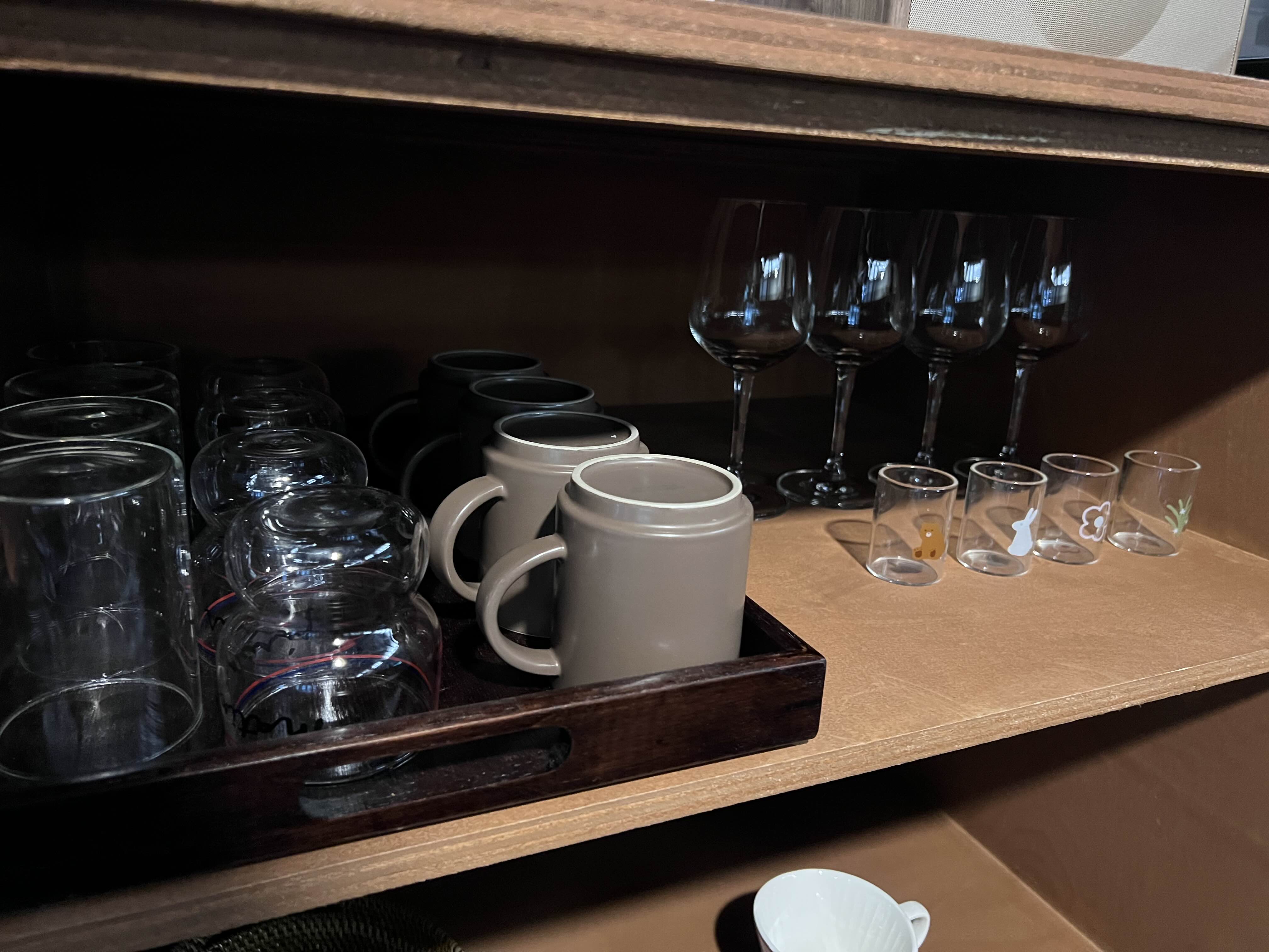 4. 4개 정도로 컵과 잔들이 세팅되어 있습니다.