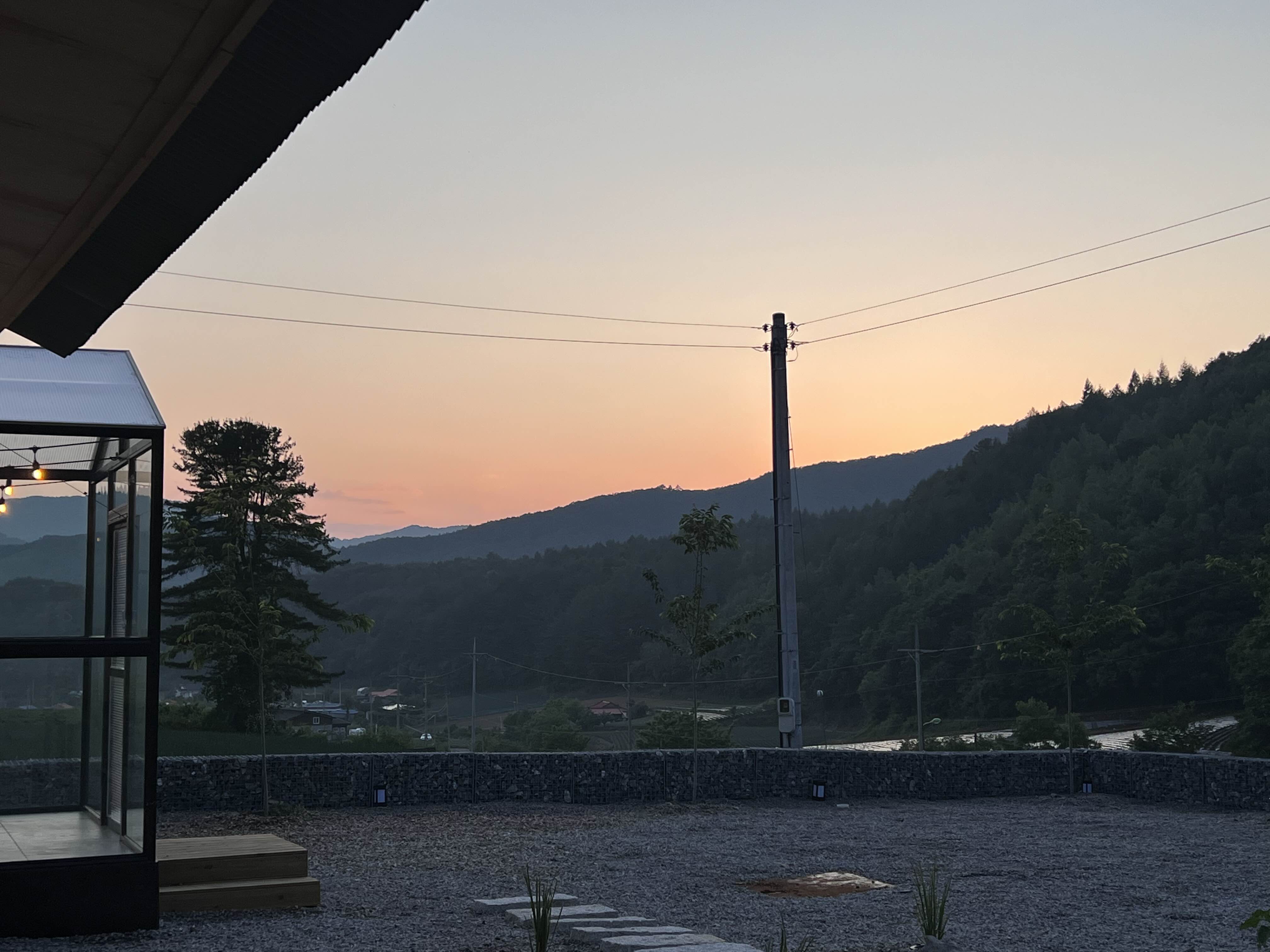 주변에는 메밀밭이 많고 산으로 둘러싸여 있어서 사람구경하기도 힘듭니다. 정말 조용해서 새소리만 들려요. 노을이 질 때는 또 얼마나 아름답게요. 노을 멍도 할 수 있습니다. 여름 방학에 이런 곳에서 지내면 얼마나 좋을까 라는 생각을 했습니다. 해가 지는 모습을 바라보고 또 저녁을 먹을 수 있어서 너무 좋았습니다.