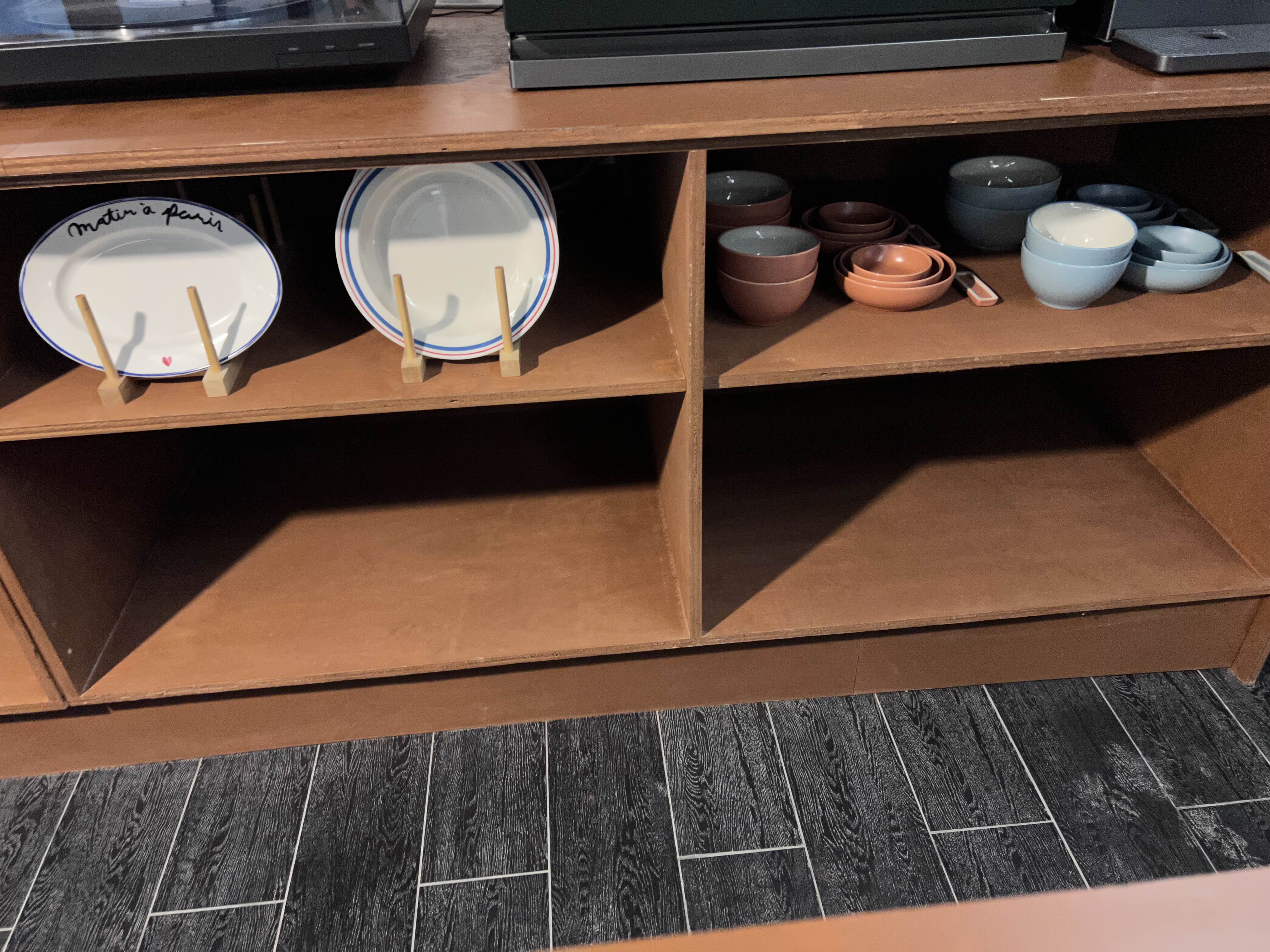 부엌에는 싱크대와 조리대 그리고 각종 그릇과 컵들이 준비되어 있습니다. 그리고 오븐, 냉장고, 얼음정수기, LP, 스피커 등이 구비되어 있어요.
