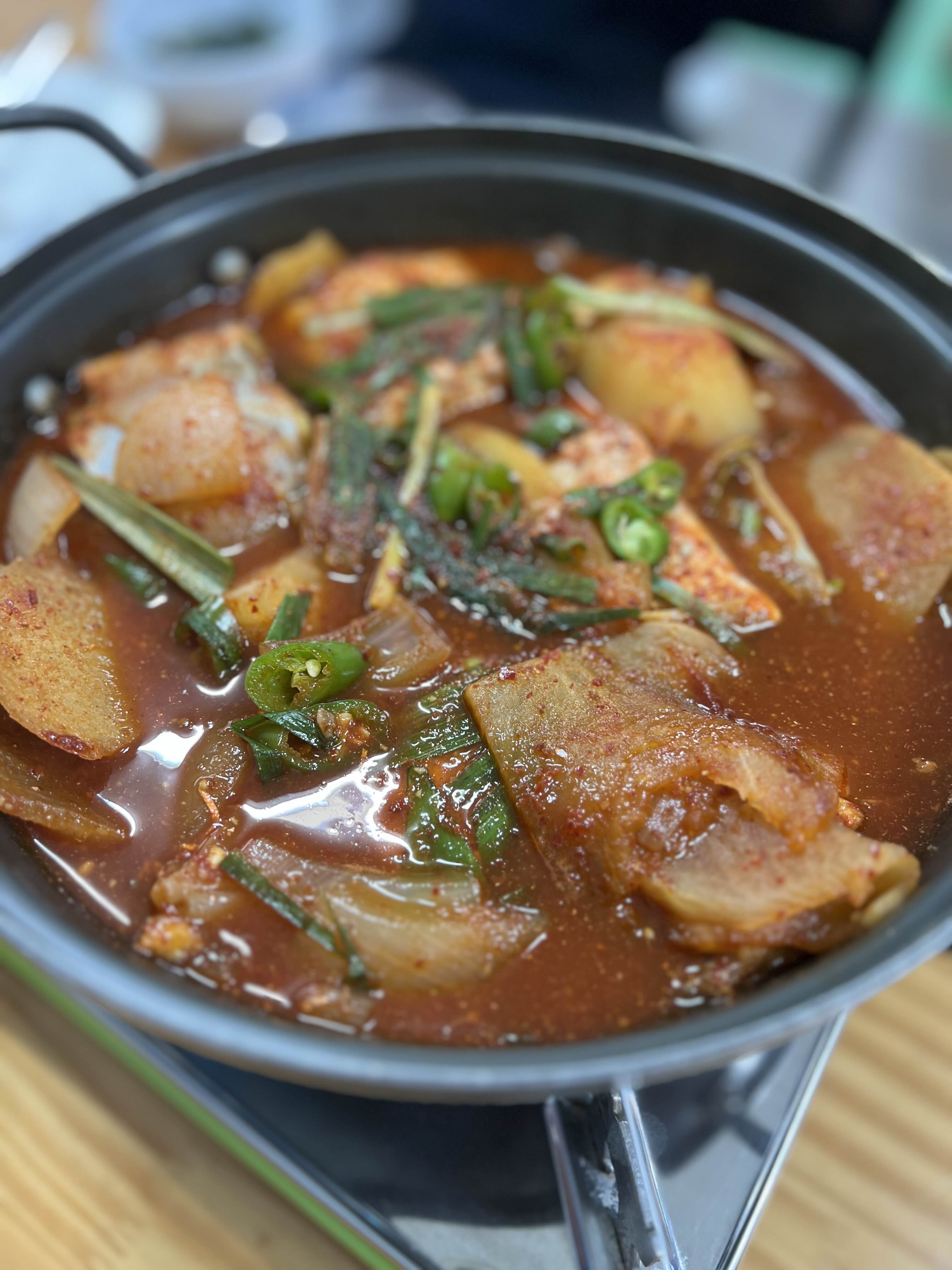 갈치조림 국물을 떠서 밥에 비벼서 먹어도 아주 좋아요. 갈치도 실하게 큰게 들어 있어서 넉넉하니 먹었습니다. 다들 나와서 물어보니 갈치조림이 가장 맛있었다고 합니다. 그래서 거의 남김없이 먹었어요. ㅋㅋ