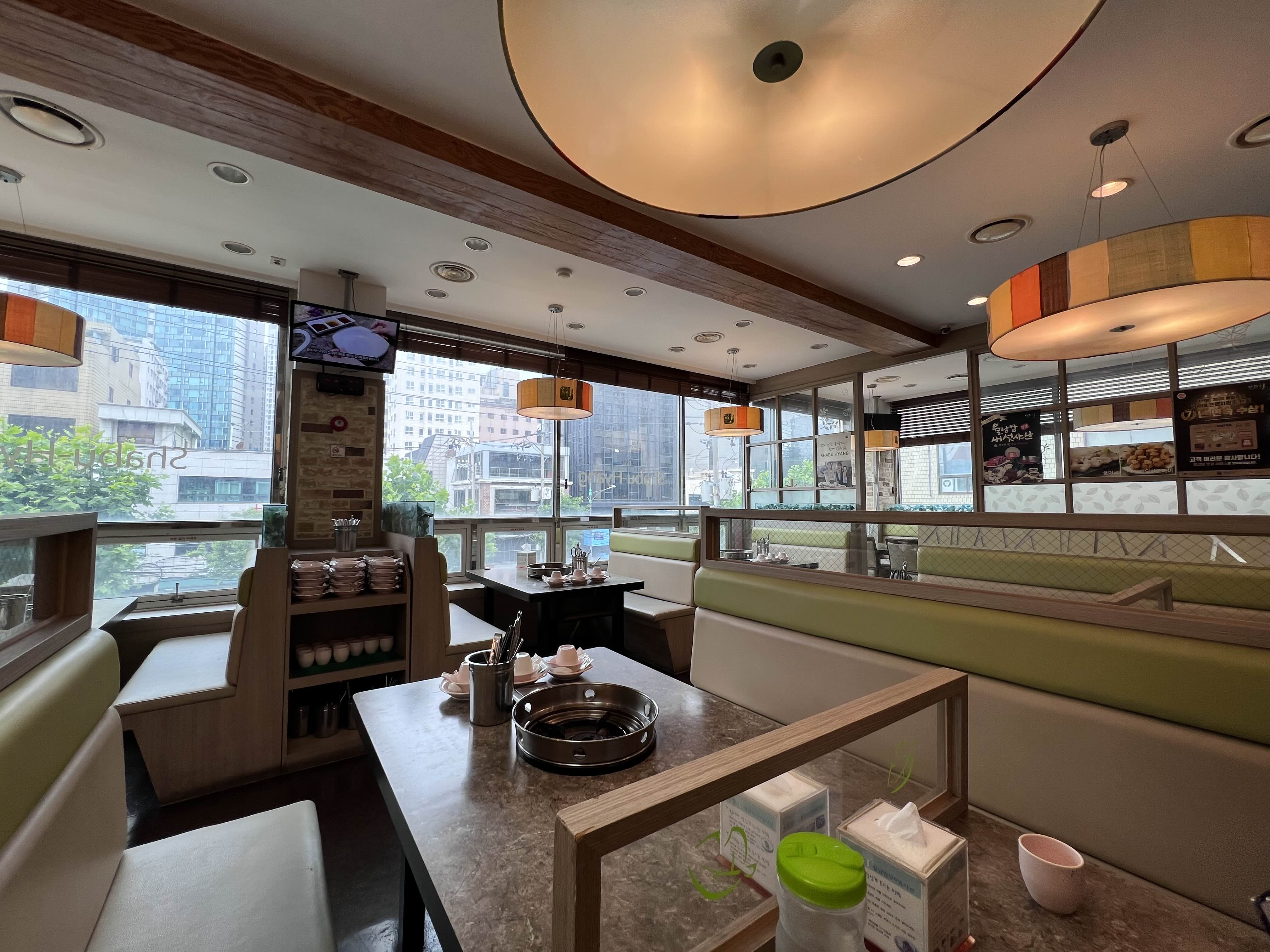 내부에는 테이블이 꽤 많습니다. 4인석으로 많이 되어 있고, 안에 단체석도 있어서 단체가 들어와도 문제없습니다. 창가쪽을 선호하시는 분들은 창가 쪽에 앉으셔도 되고, 지금처럼 조금 더운 시기에는 가운데 쪽에 에어컨 아래 앉으면 시원해요! 테이블 간 거리가 좀 있어서 좋습니다. 주문하실 때는 육수가 맑은 육수, 매운 육수가 있는데 반반으로도 시킬 수 있으니까 반반으로 주문해 주세요. 이왕이면 두 가지 육수를 다 맛보는 것이 좋잖아요. 저희도 반반 육수로 주문했습니다.