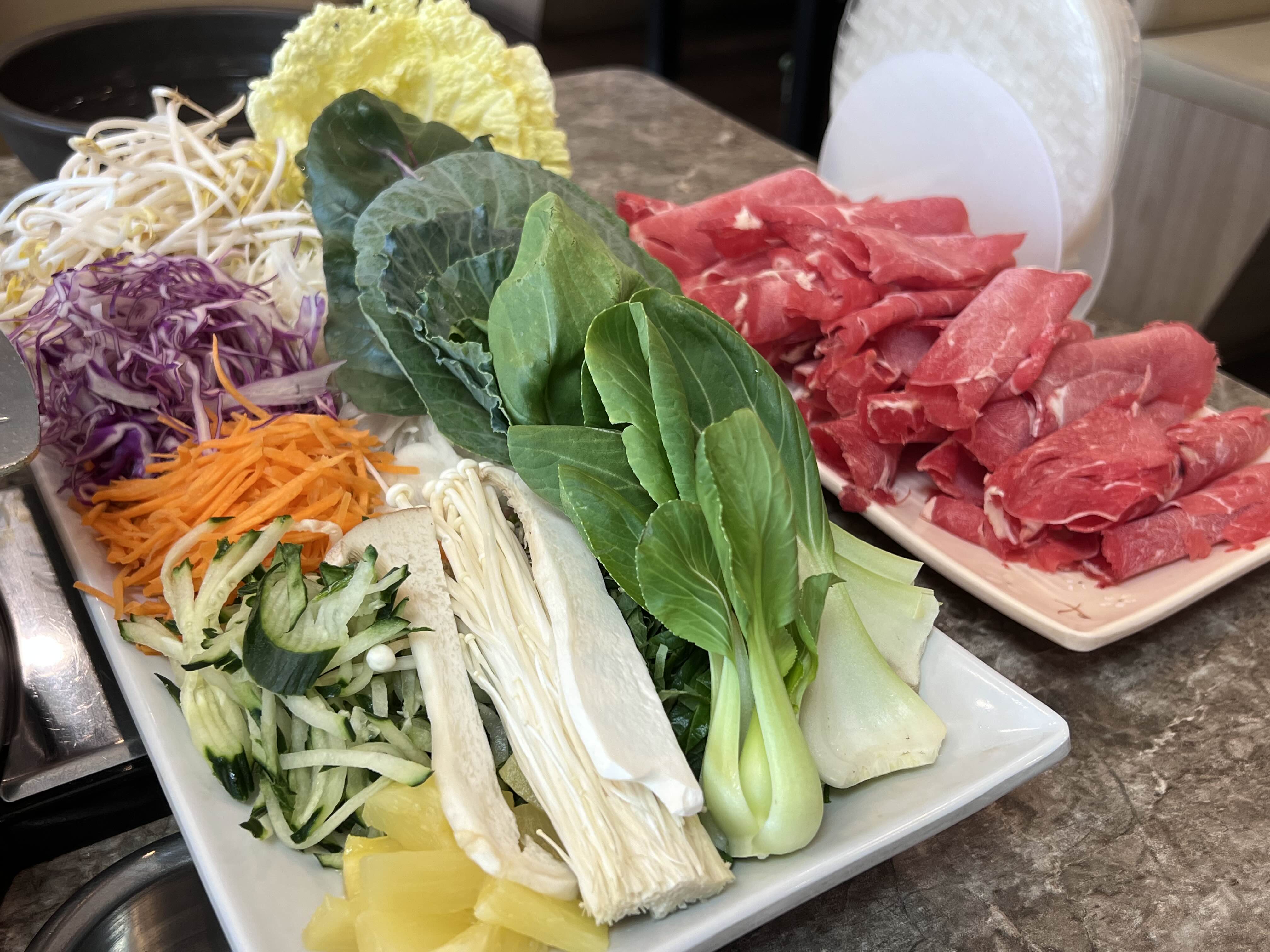 월남쌈 샤브샤브가 준비되었습니다. 물이 끓기 시작하면 야채를 넣고 그다음에 고기를 넣어서 드시면 됩니다. 익는 동안에 월남쌈을 하나 싸서 드셔보세요. 신선한 야채를 먹을 수 있어서 다이어트나 식단조절하시는 분들에게도 좋은 메뉴인 것 같습니다.