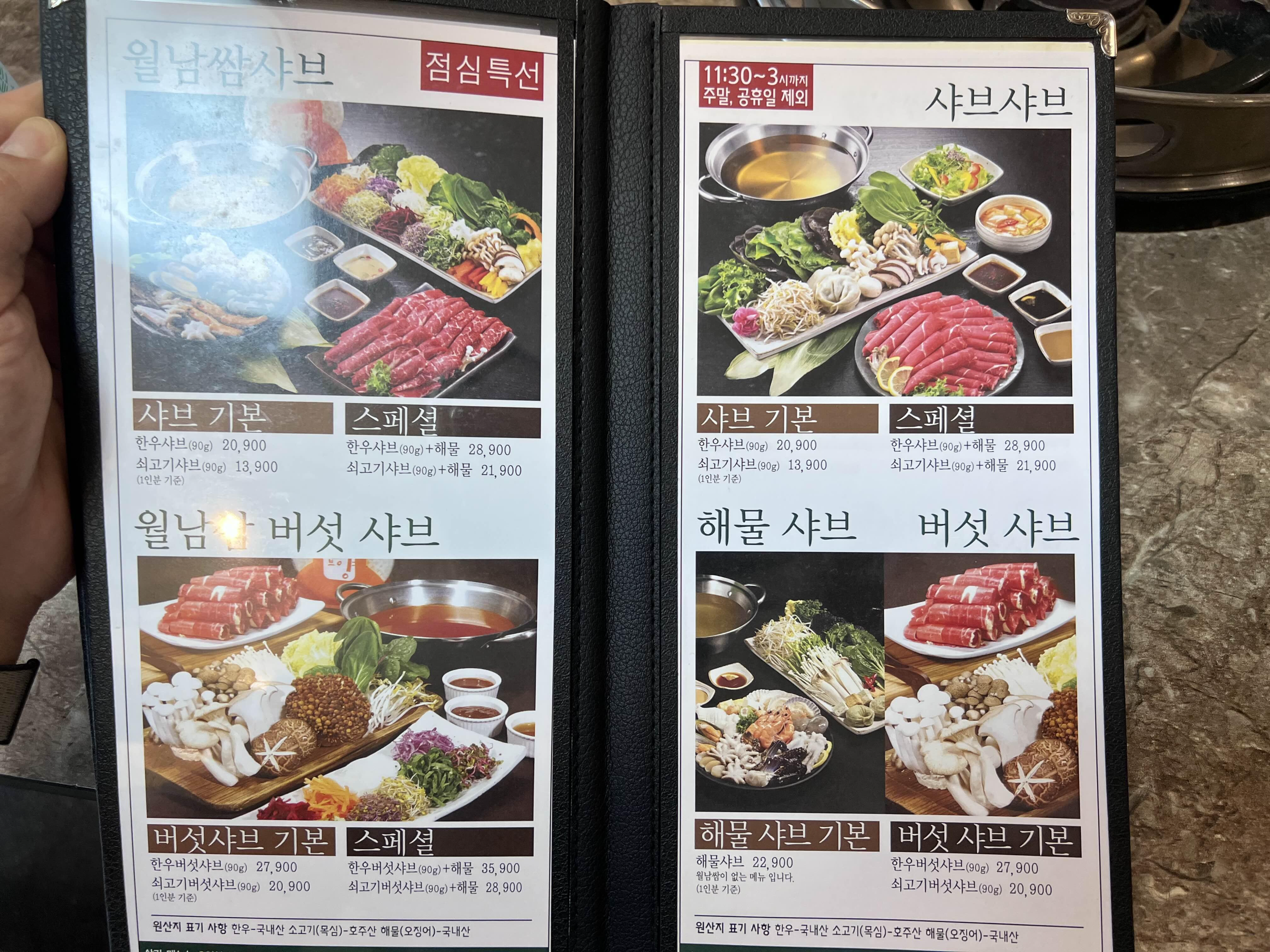 메뉴엔 월남쌈샤브와 그냥 샤브샤브가 있는데 월남쌈샤브를 추천드립니다. 가격도 똑같아서 월남쌈도 같이 드시면 좋기 때문이죠! 저도 항상 가면 월남쌈 샤브만 먹습니다. 평일 점심에 가면 가격이 더 저렴하니 참고해 주세요! 아래 점심특선으로 있어서 평일 점심으로 많이 가는 편입니다.