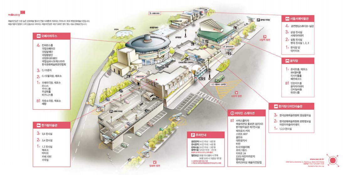 오페라주차장은 한가람미술관이나 디자인미술관, 오페라하우스, 비타민스테이션으로 접근하기가 좋습니다.