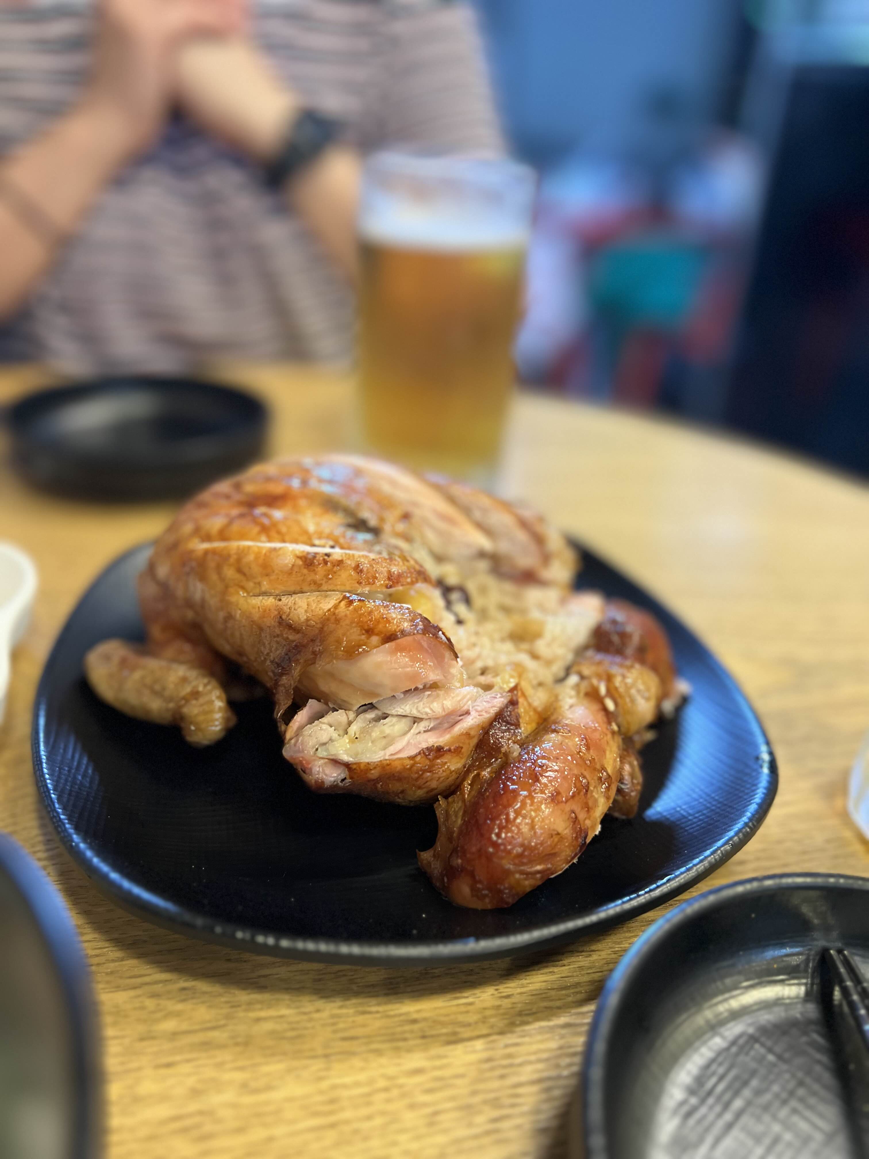 겉은 바삭하고 안은 촉촉하고 겉바속촉의 표본입니다. 겉은 정말 고소하고 밥도 고소하고 운동하고 먹는다면 더없이 좋을 메뉴입니다. 맥주랑 같이 먹다 보니까 저희는 한 마리로 충분했습니다. 만약 운동인 들이나 양이 크신 분들이라면 살짝 부족할 수도 있겠는데 그럼 사이드메뉴를 하나 더 시키는 게 낫겠죠? 아님 맥주로 배 채우시거나.....