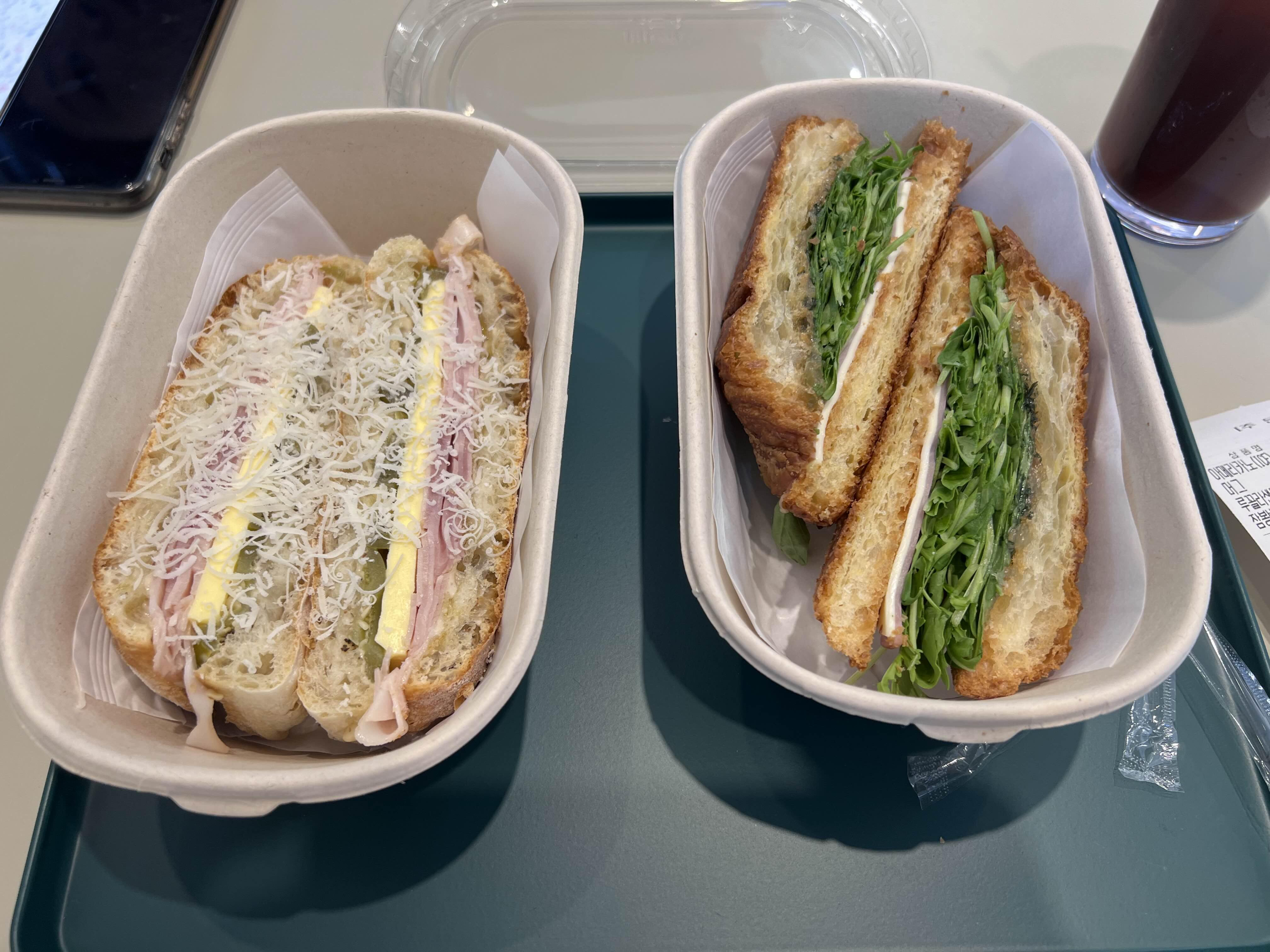 매장이 작다보니까 자리가 없거나 테이크아웃으로 많이 사갑니다. 저는 잠봉뵈레 먹었는데 맛있었습니다. 주말에 브런치로 커피와 먹었는데 휴일에 아이들과 일찍 전시를 보러 가신다면 비밀에서 샌드위치나 샐러드를 간단히 먹고 전시를 보시는 것을 추천드립니다. 아침부터 배부르게 먹기에 부담스러우니 커피와 샌드위치로 간단히 먹고 전시 보고 나서 제대로 점심 드시면 좋습니다.