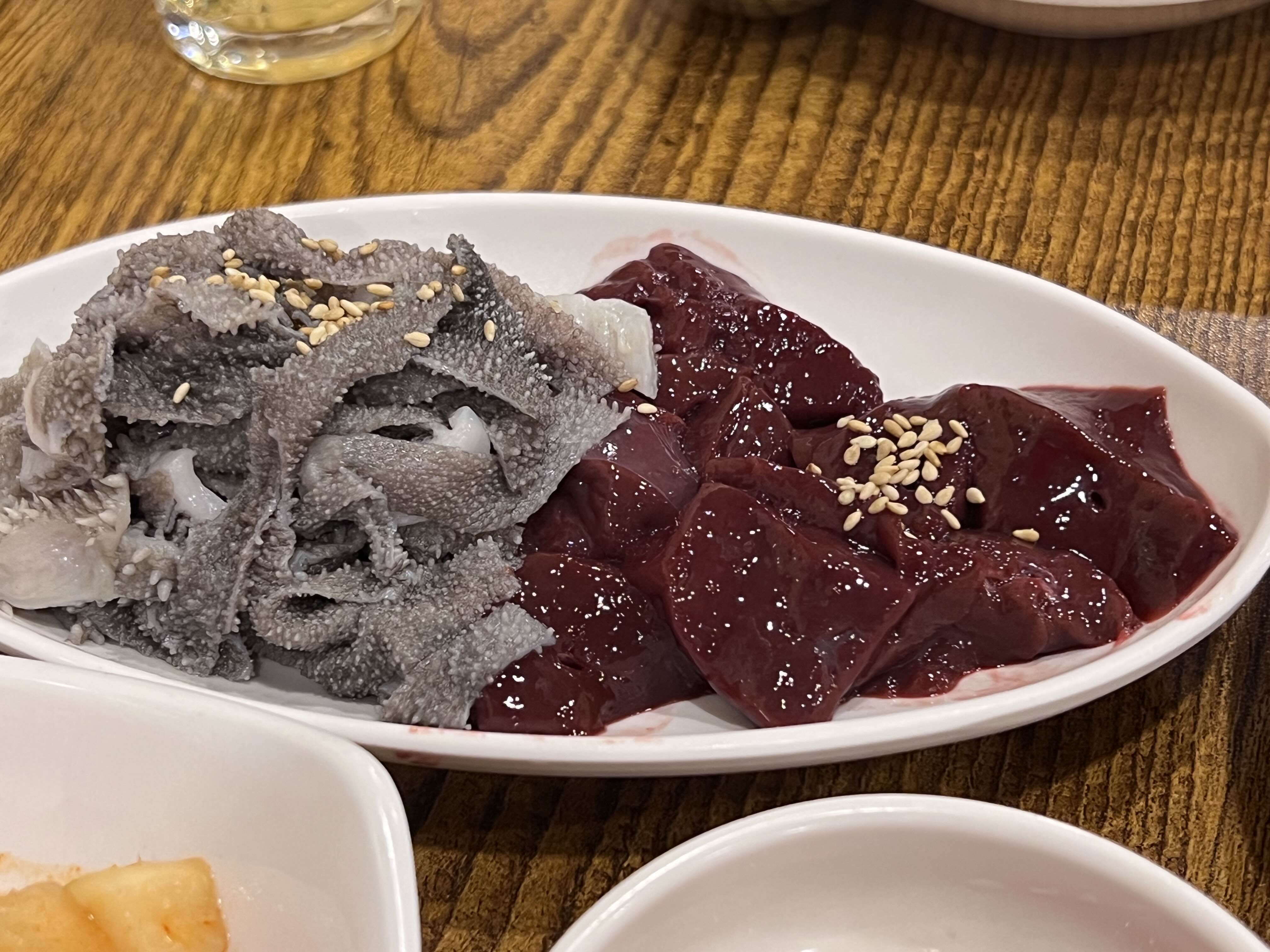 기본으로 간과 천엽을 주신다. 간도 아주 맛있고 천엽도 맛있다. 곱창이 나오기 전에 간과 천엽으로 술 한잔 크~~~~