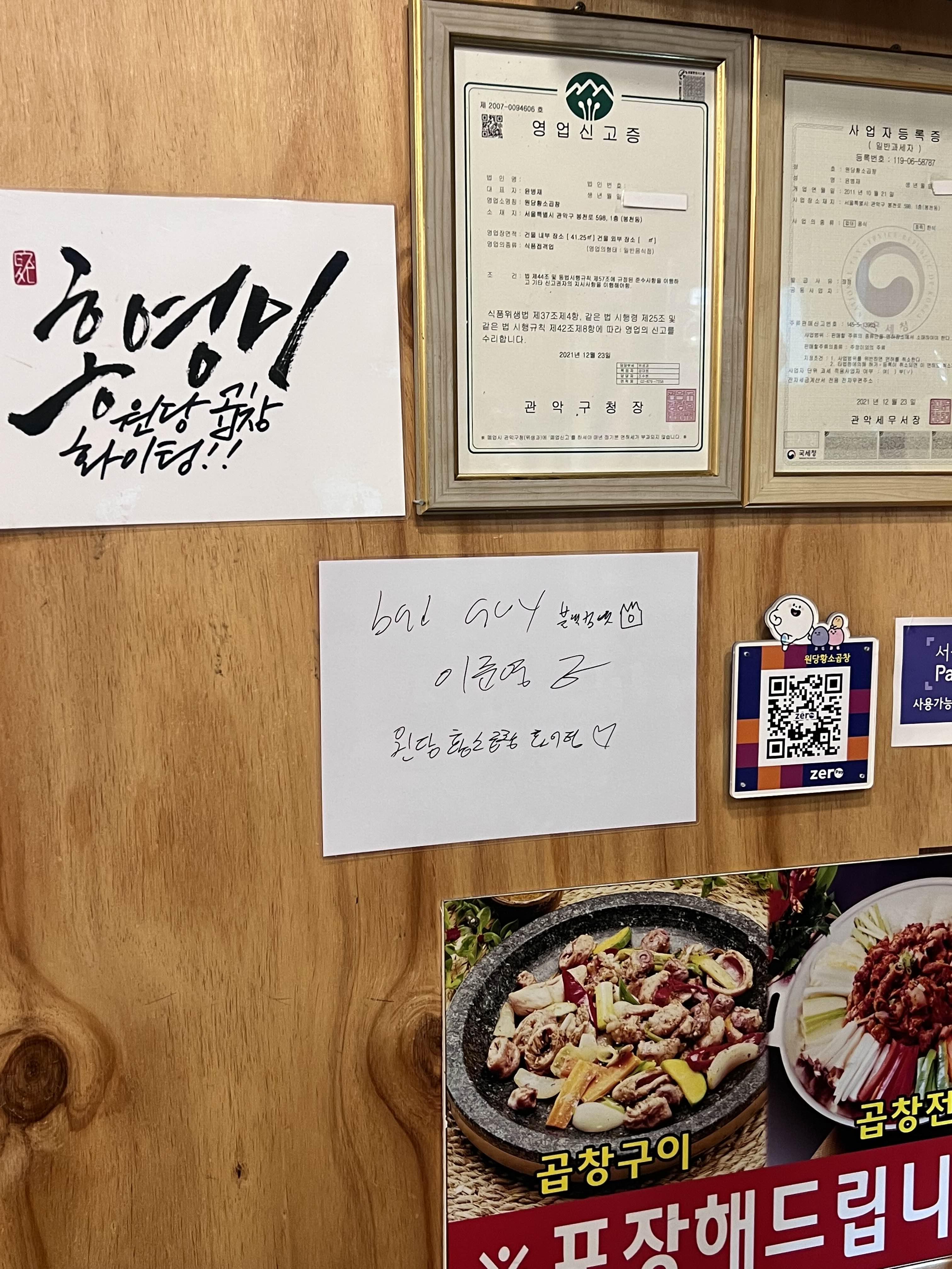 계산하려고 계산대에 갔는데 내가 즐겨보는 블랙컴뱃에 배드가이가 사인한 것이 있어서 찍었다. 유명한 사람들이 많이 왔으면 좋겠다. 아주머니도 너무 좋으시고 맛도 너무 좋다. 낙성대에 간다면 꼭 드셔보길 바랍니다. 제가 내돈내산으로 먹고 쓰는 글인 점 참고해 주세요!:-)