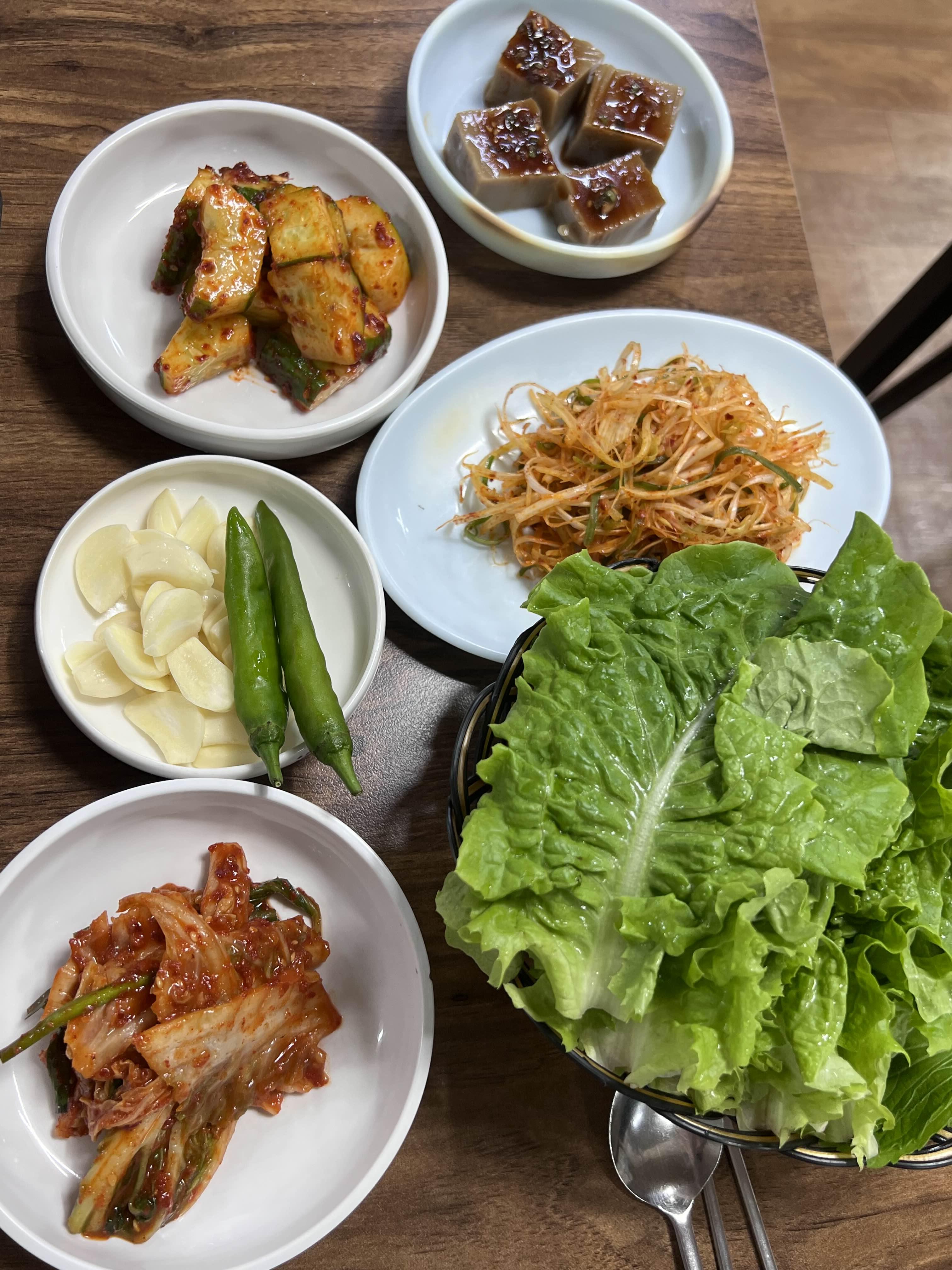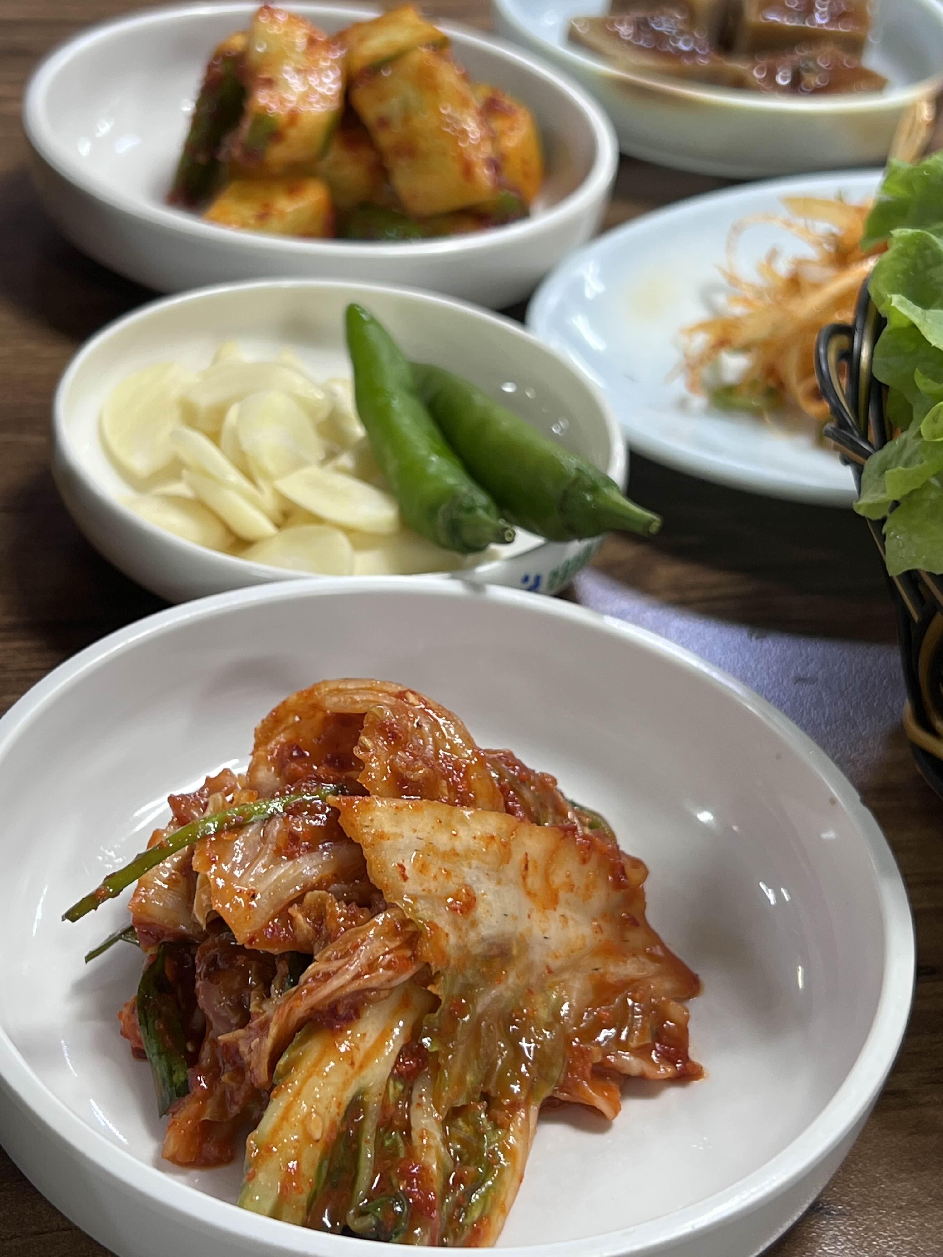 이 집의 가장 큰 메리트는 기본 반찬입니다. 반찬들을 매일 새로 하시는지 엄청 신선하고 아삭합니다. 겉절이 느낌의 반찬이다 보니 자꾸 손이 갑니다. 기본 반찬은 몇 번 리필해서 먹어야 할 정도입니다. 느끼하다고 생각되면 쌈하나 싸 먹고 반찬 먹고 하면 됩니다. 저는 오이무침이 정말 맛있어서 계속해서 먹었습니다. 오이가 정말 오늘 무친 것처럼 아삭하고 맛있었어요. 오이를 좋아하시는 분이라면 추천합니다.