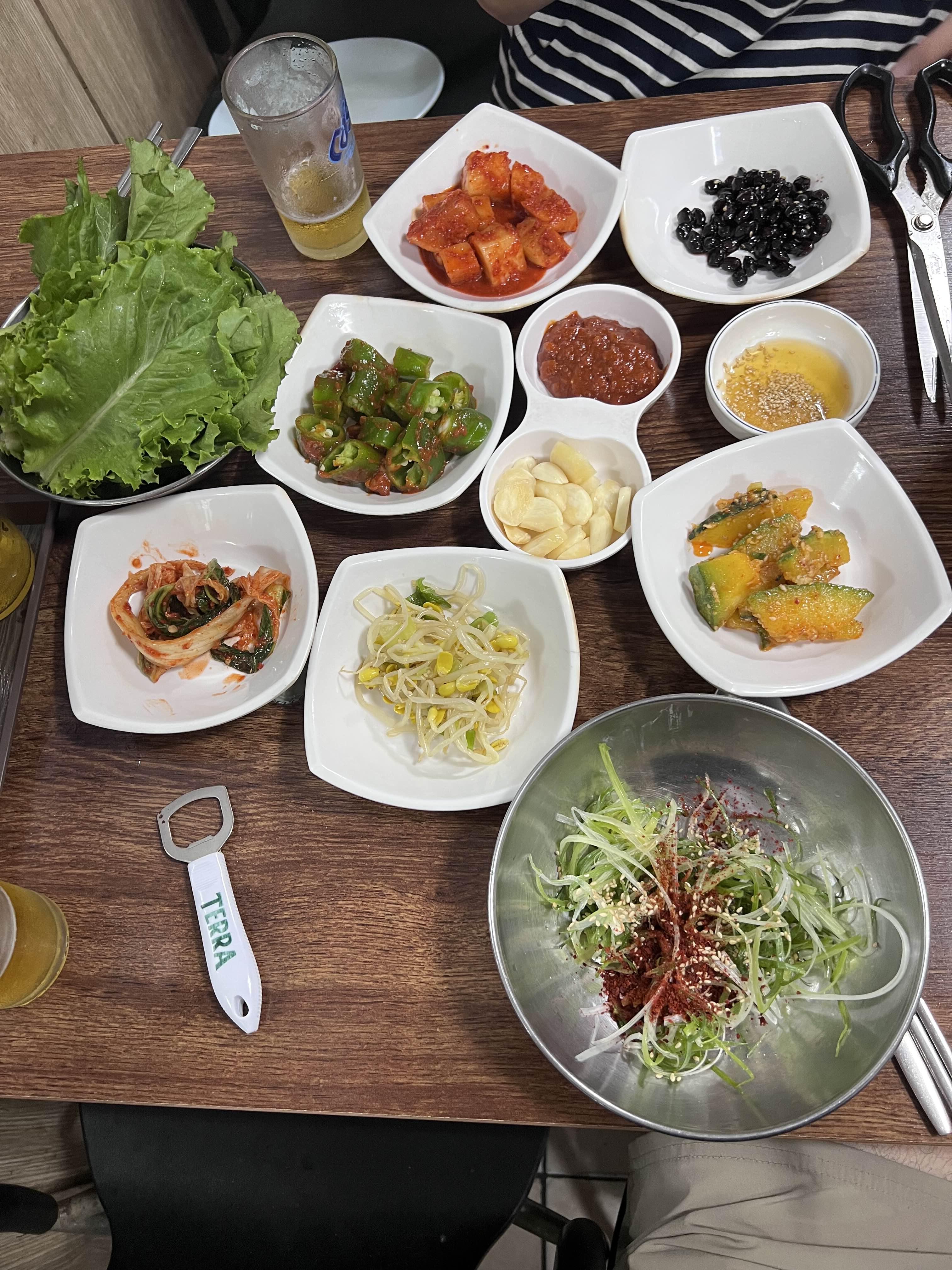 이 집은 기본반찬이 다 맛있습니다. 그날그날 바로 반찬을 하시는 것인지 다 신선했고, 제가 좋아하는 오이무침이 있어서 너무 좋았어요. 저는 삼겹살 먹을 때 아삭한 오이고추를 많이 먹는데 마침 오이무침이 나와서 한 접시 다 먹고 또 달라고 했어요. ㅋㅋ