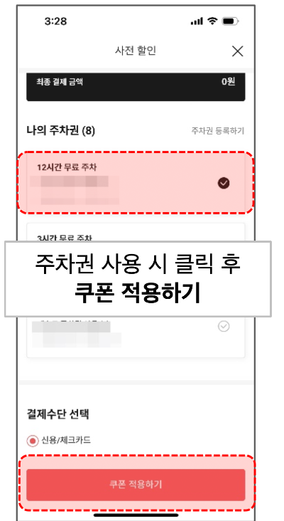 만약에 골드회원이나 다른 주차권이 있다면 적용하시고 결제를 완료하면 됩니다. 주차권이 적용되면 무료로 결제가 완료가 될 수도 있습니다. 주차권이 있다면 잘 활용해 보세요!