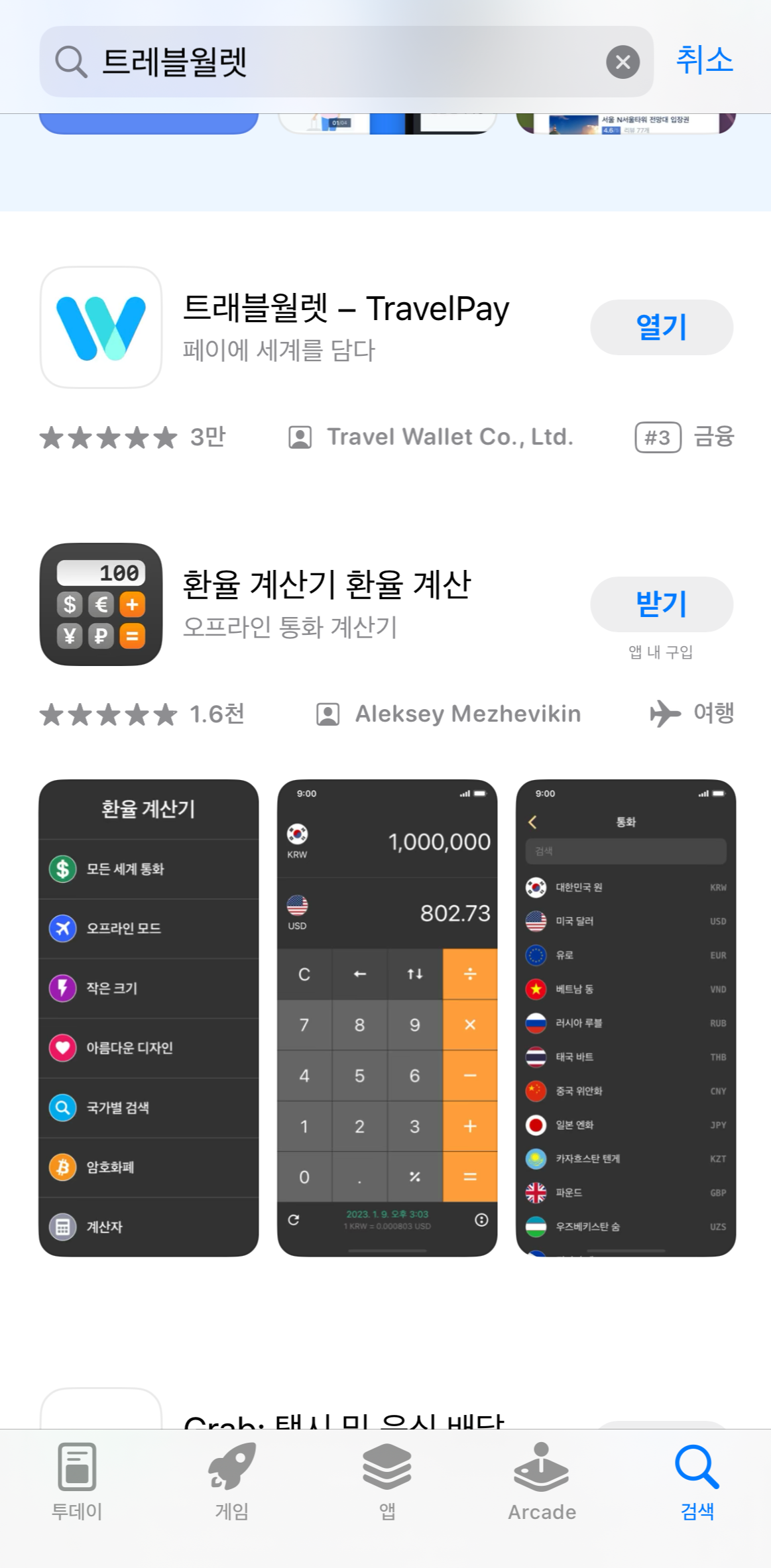 먼저 App store에서 트레블월렛을 다운받아주세요. 검색하면 바로 나옵니다. 트레블월렛 찾다가 밑에 환율계산기도 보여서 같이 다운로드하였어요. ㅋㅋㅋ 나만 이런가 그냥 필요해 보이면 바로 다운 ㄱㄱ
