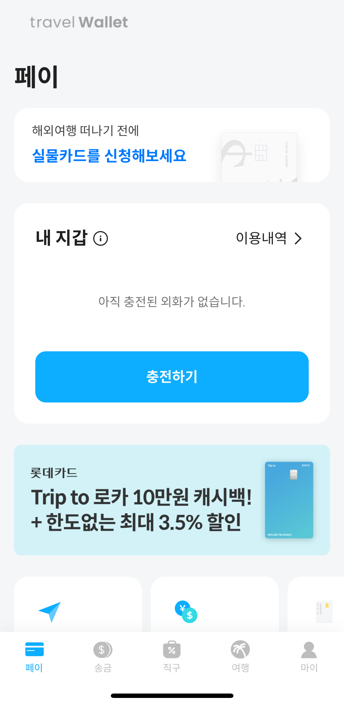 그럼 따로 실물로 환전할 필요 없고, 트래블월렛에서 환전하고 트레블 카드로 현지에서 사용하시면 됩니다.