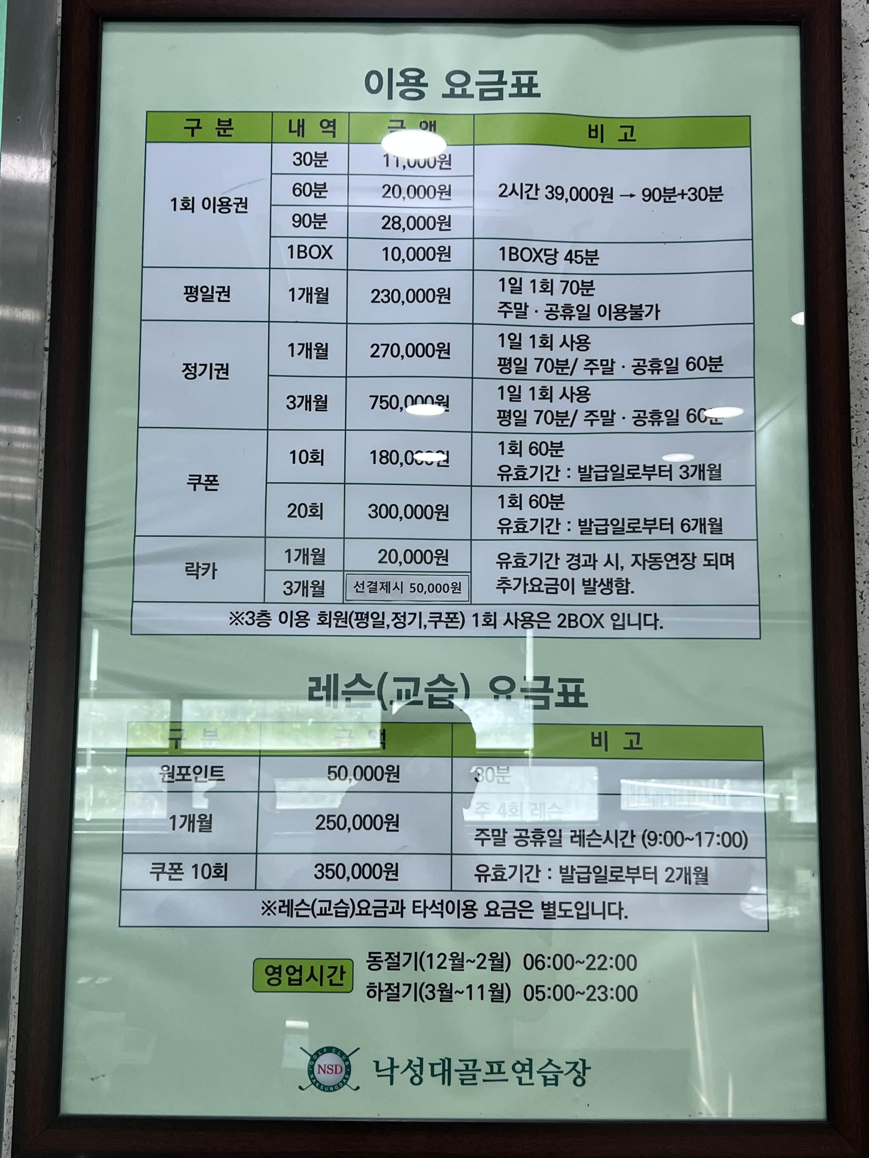 레슨도 받을 수 있는데요, 이곳에는 3명의 프로님이 계세요. 프로님 휴무일도 나와 있으니까 자신의 스케줄에 맞는 프로님에 레슨을 받으시는 것도 추천드립니다. 가끔 레슨 받는 분들도 계시더라고요.
