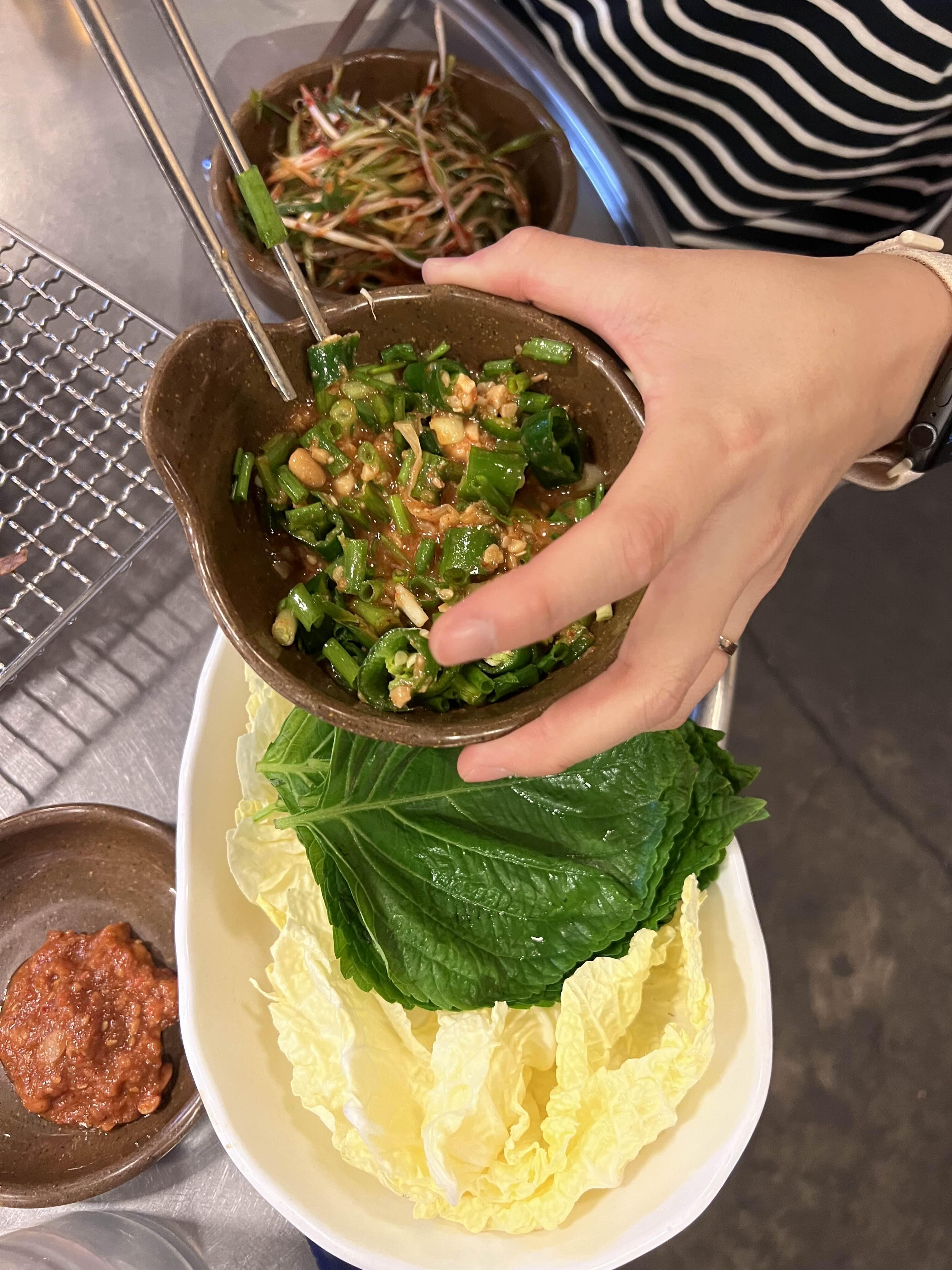그리고 파절이도 나오고 배추랑 상추도 나옵니다. 저는 배추가 산뜻하고 좋아서 느끼한 막창이랑 같이 먹는 편이에요.:-)
