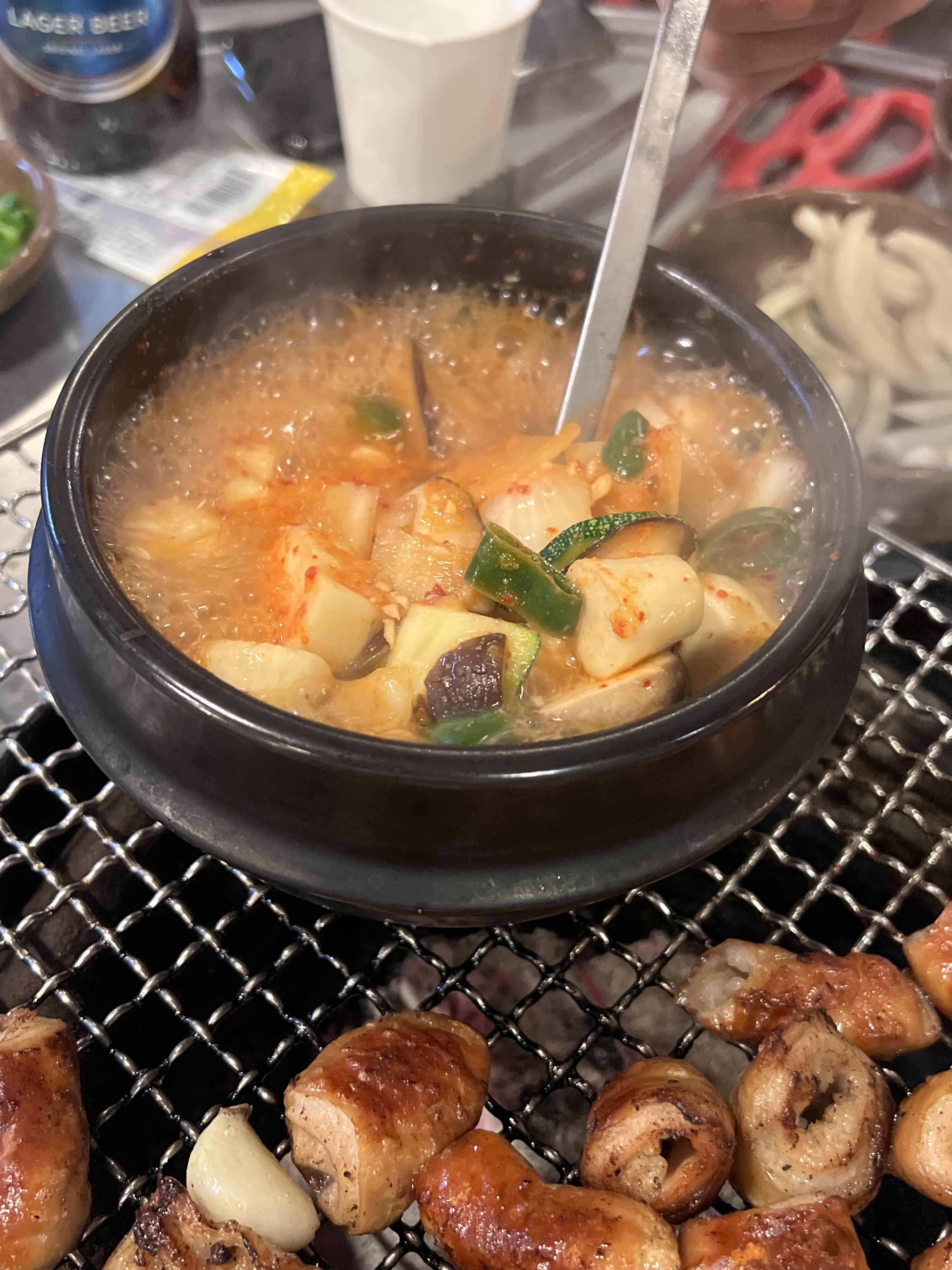 된장찌개도 그릴 위에 올려주셔서 따듯하게 유지하면서 먹을 수 있었어요. 밥도 하나 시켜도 될 텐데 저희는 배가 너무 불러서 차마 시키진 못했어요. 식사량이 많으신 분들은 밥도 같이 시켜서 드셔도 좋을 것 같습니다. 대구막창만 먹으면 조금 느끼할 수도 있어서 밥이나 된장찌개를 같이 먹는 게 현명할 수 있을 것 같아요!
