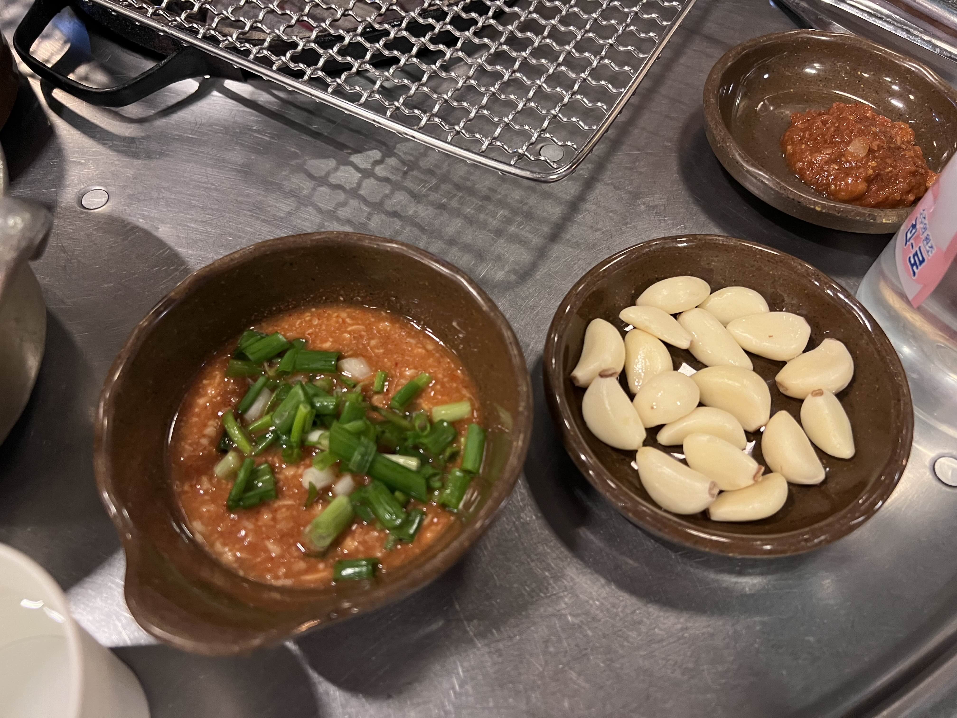 대구막창은 같이 나오는 막장이 중요해요. 다른 지방보다 다른 점은 막장이 나오는데 취향에 따라서는 썰은 고추를 넣어서 먹기도 합니다. 서울에서 먹을 때는 콩나물도 넣고 하던데 가게마다 약간씩은 다른 것 같아요. 저는 막장이 막창이랑 궁합이 너무 잘 맞는 것 같다고 생각해요.