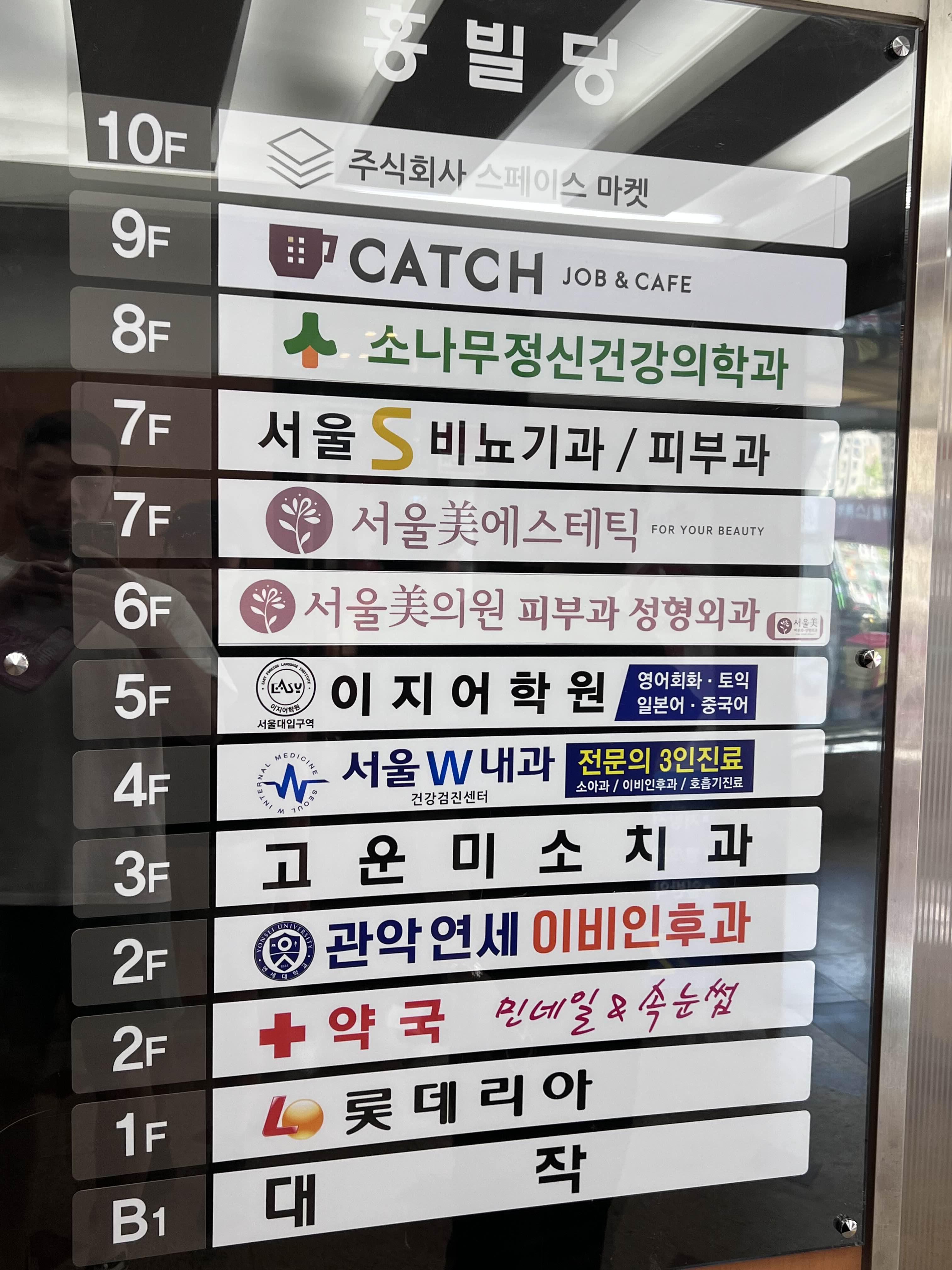 이 건물에는 모든 층이 아주 병원으로 가득 찼습니다. 만약에 이비인후과 말고도 다른 곳도 아파서 같이 들리셔야 하는 경우에는 한 번에 모두 진료 볼 수 있을 것 같네요!
