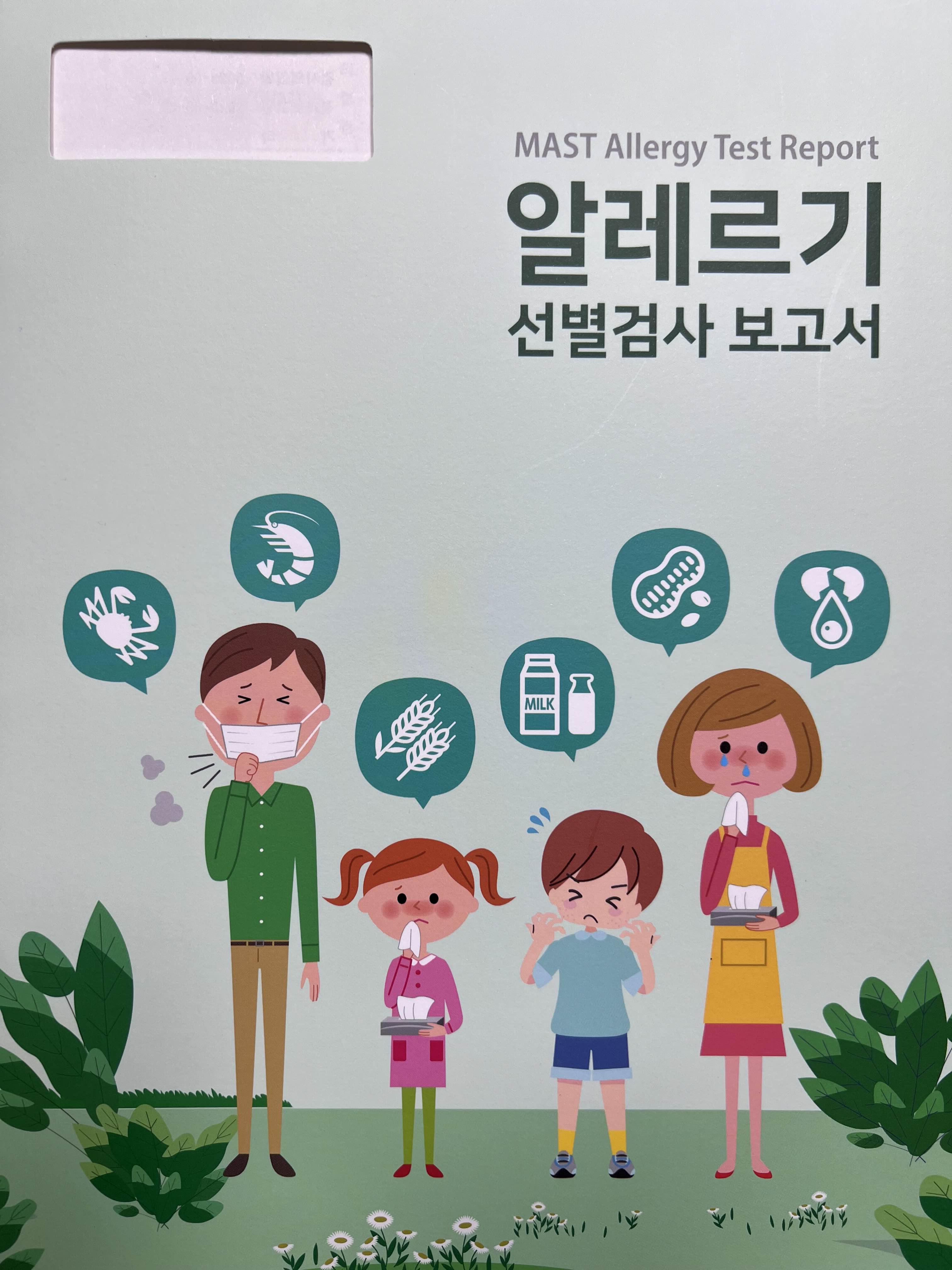 드디어 선생님께서 진료를 봐주셨고, 코에 있는 콧물을 빼주시고 약도 뿌려주셨어요. 그리고 눈도 가려울 때가 있냐고 해서 그렇다고 했어요. 저는 눈이 가려운 게 제가 더러운 손으로 눈을 만져서 그런가 했는데 다 알레르기 반응이었던 거예요. ㅠ 선생님께서도 알레르기 반응인 것 같다고 하셨고 알레르기 검사 해보자고 하셨습니다. MAST 알레르기 검사는 피를 뽑아서 하는 검사예요. 피만 뽑으면 되기 때문에 아프거나 번거롭지 않습니다. 피만 뽑고 검사 끝! 결과는 3-4일 뒤에 나왔습니다.
