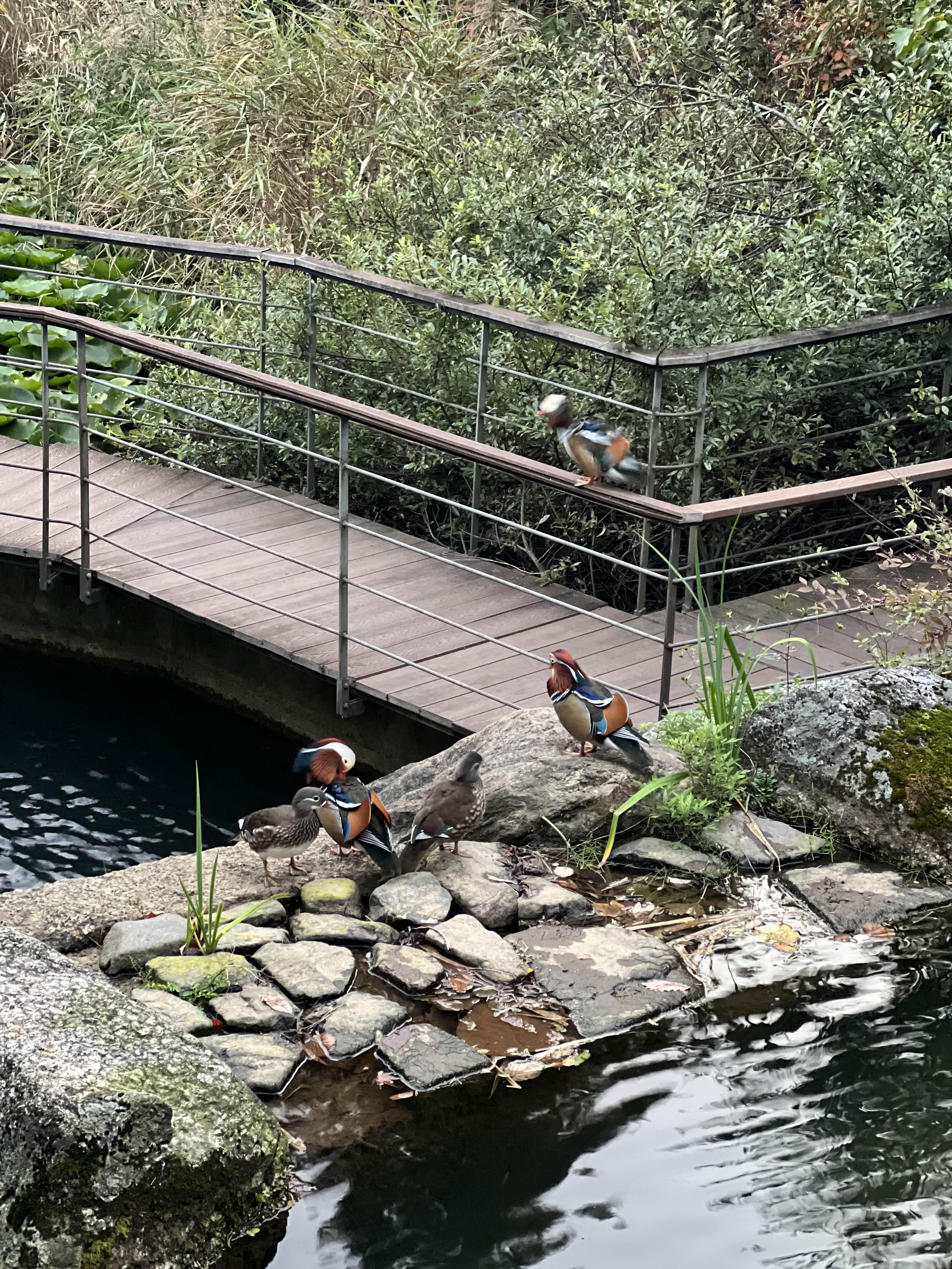 저희는 내려와서 처음이 맞이했던 원앙연못으로 왔습니다. 원앙들이 몸을 씻고 몸을 정비하고 있었는데 원앙도 몸이 화려해서 가을과도 잘 어울렸습니다. 가까이서 처음 봤는데 너무 이쁘더라고요. 한참 원양을 구경하다가 해가 뉘엿뉘엿 넘어가고 추워져서 빠르게 내려왔습니다.