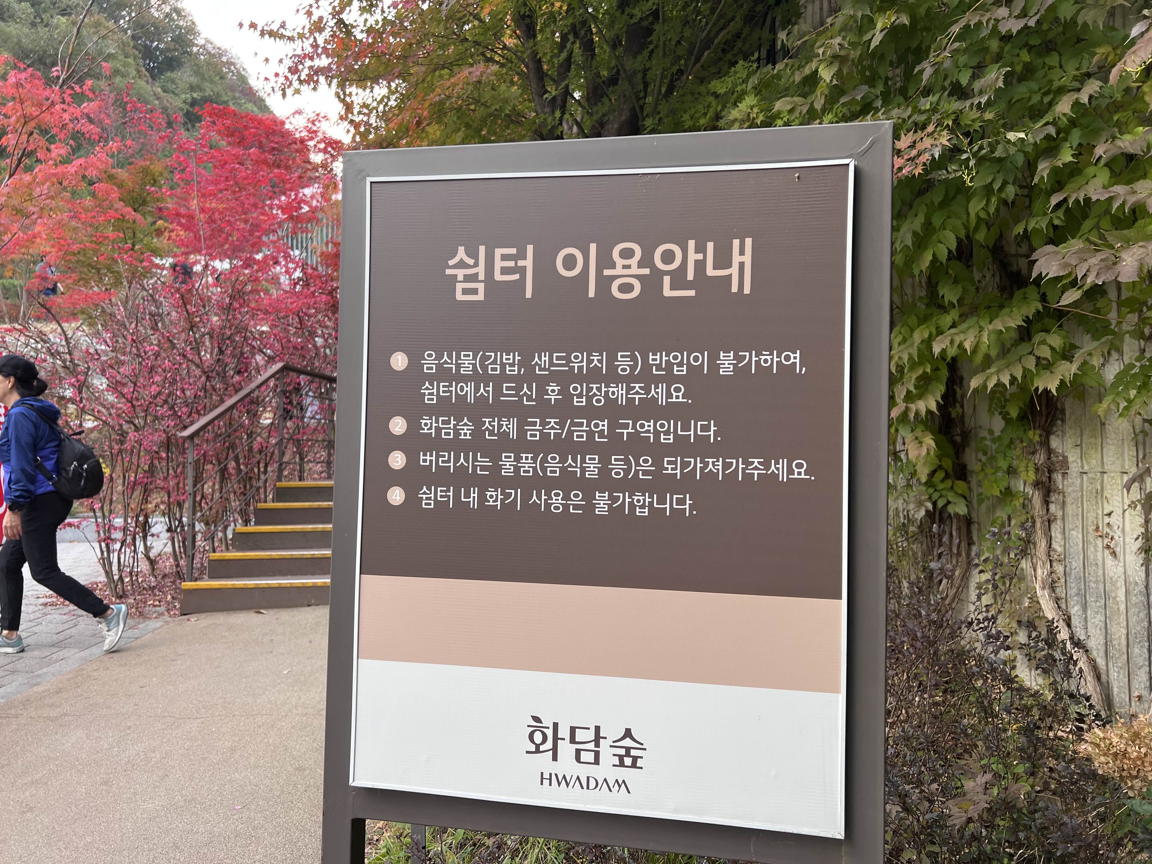 화담숲 안에서는 음식물 반입이 불가해서 쉼터에서 다 드시고 올라가거나 버리고 올라가야합니다. 미리 음식물을 챙겨 오시지 마시고 간단한 물만 챙겨서 올라가시면 될 것 같습니다. 모노레일을 탄다고 해서 약 2시간 정도는 생각하시는 게 좋습니다. 표를 미리 구매 못하신 분들은 매표소에서 구매를 해주시고 저처럼 사전에 예약을 하신 분들은 카톡으로 와 있는 QR코드를 입장할 때 보여주시면 됩니다. 미리 카톡으로 QR준비하면 바로 입구로 가서 입장하시면 됩니다.