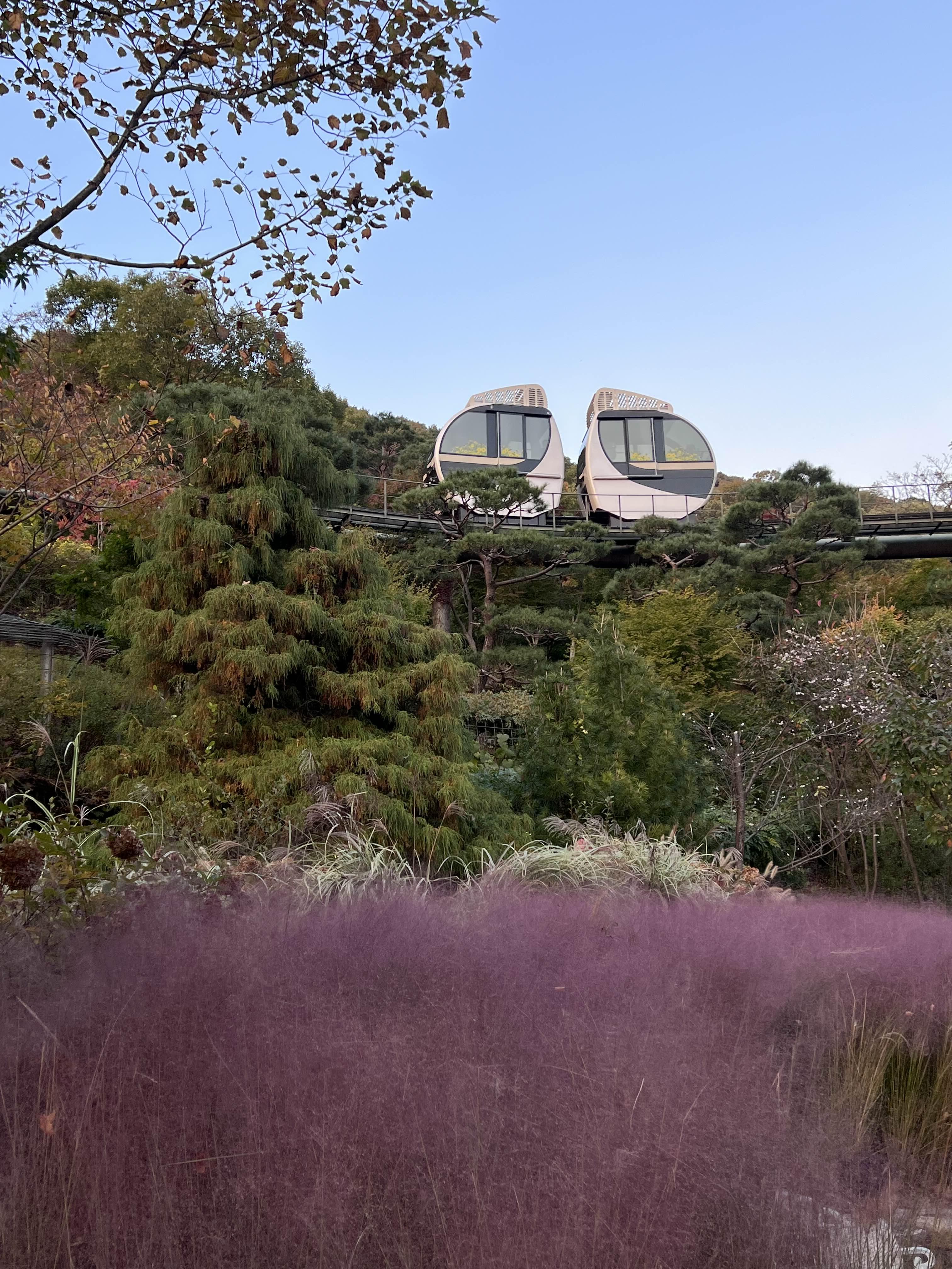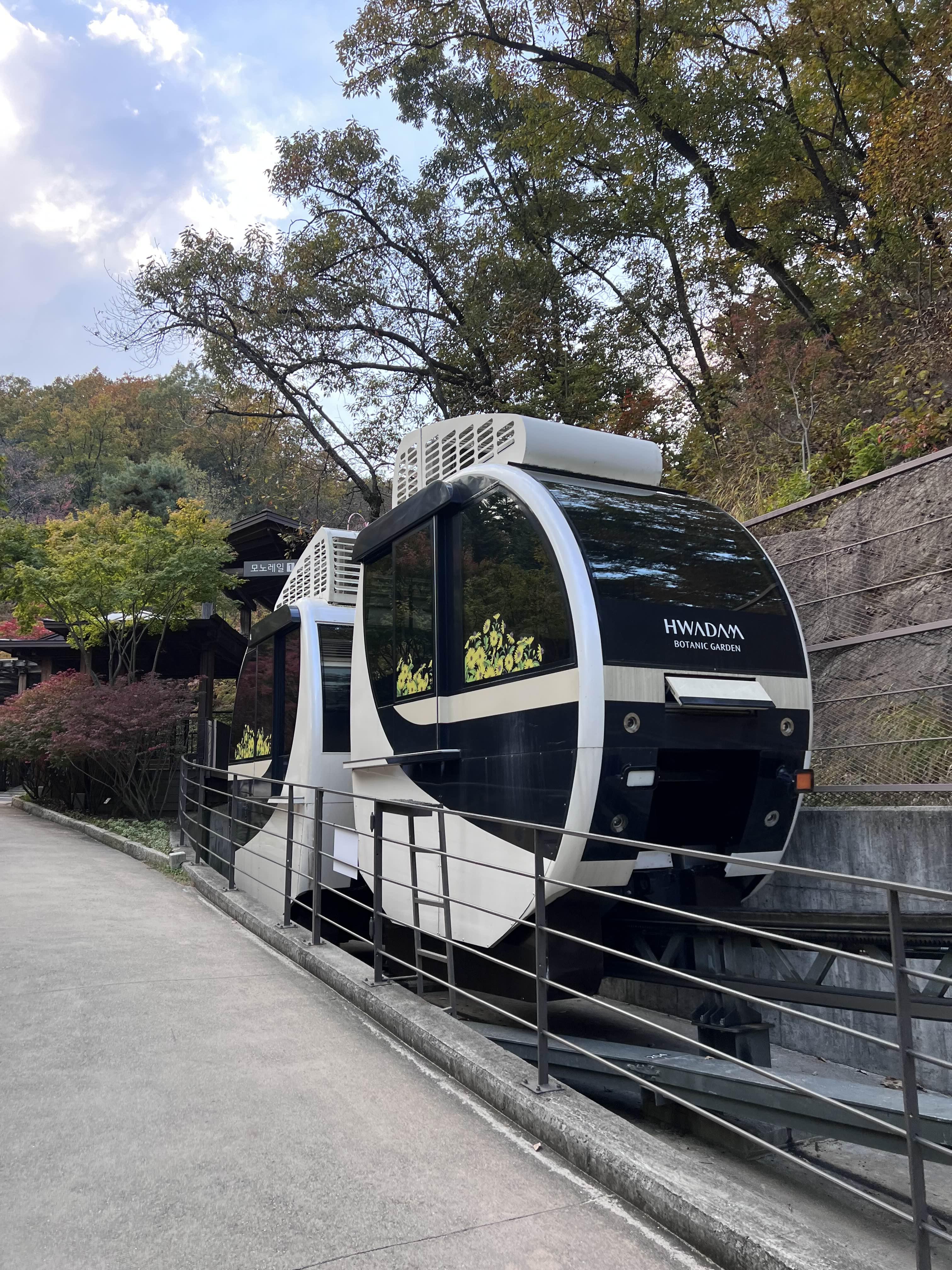 곤충생태관을 지나서 올라가면 이제 모노레일 탑승장이 나옵니다. 저희는 1,2구간을 모두 예약했는데 이용해 보니까 1구간만 탑승해도 충분하실 것 같아요. 그리고 체력이 되시는 젊은 커플들은 그냥 걸어서 올라가도 무방할 것 같아요. 모노레일을 탄다고 뷰가 좋거나 대단한 것은 아니더라고요. 오히려 밖에서 단풍과 모노레일을 같이 보는 게 더 이쁘게 보였습니다. 인스타그램에서도 보셔도 모노레일 안에서 찍은 영상보다 밖에서 보며 찍은 영상이 더 좋습니다.
