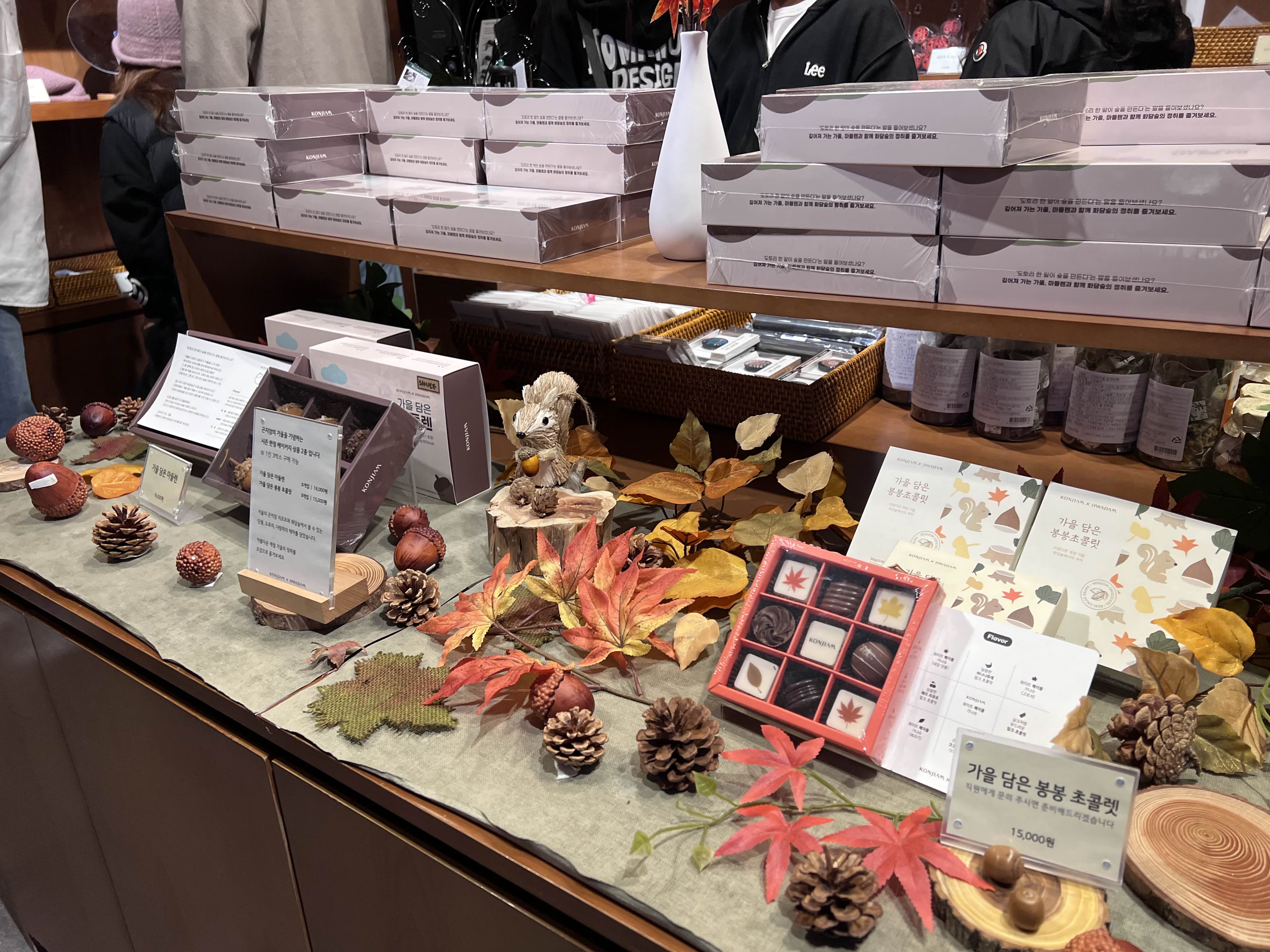 기념품샵에서 마들렌이나 초콜릿 등이 있었는데 제가 좋아했던 기념품은 바로 디퓨져였습니다. 화담숲을 생각나게 하는 향이라 기념품으로 사가면 집에서도 화담숲 생각을 하거나 숲을 데리고 집에 가는 느낌일 것 같았어요. 디퓨저는 그렇게 비싸지 않았어요. 2만원대 였기 때문에 하나 구매해서 갔습니다. 여러분도 한번 향 맡아보시고 구매해 보세요!