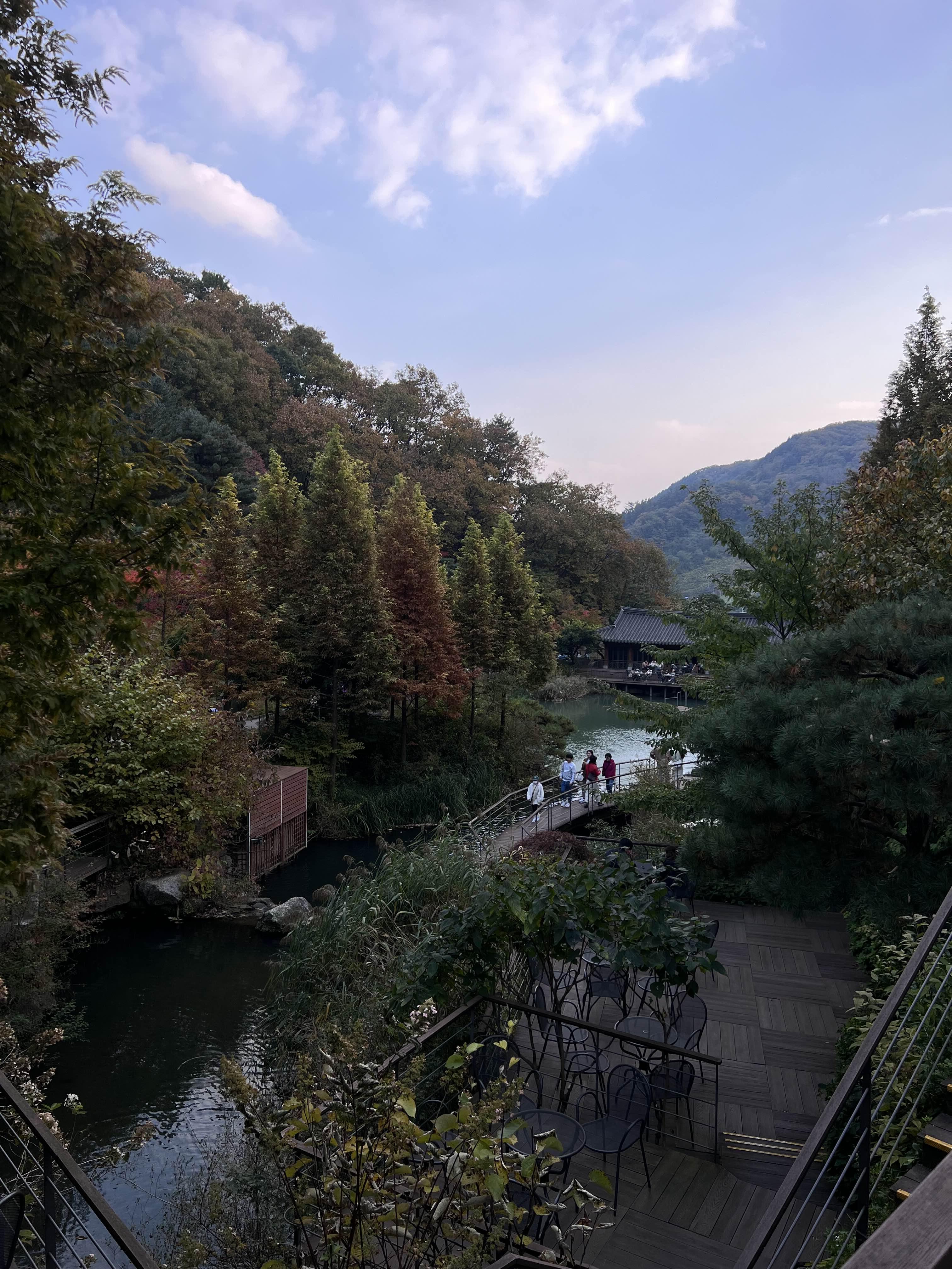 이끼원쪽에서 반대로 넘어가는 하트모양의 다리가 있는데 여기서 사진을 많이 찍더라고요. 사진 찍는 사람들이 너무 많아서 지나가기도 힘든 상황이었습니다. 여기서 사진 찍기는 정말 어려웠어요. 지나가는 사람들이 많아서 피해서 찍으려고 하면 계속 기다리기를 반복해야 했습니다. 그래서 대충 셀카만 찍고 왔어요;;; 외국인 단체 관광객들도 많아서 더 북적였던 것 같아요. 유모차 같은 경우에는 더 건너가기 힘들었던 것 같아요. 사람이 많으면 피해가시는 게 나을 것 같아요.ㅠ