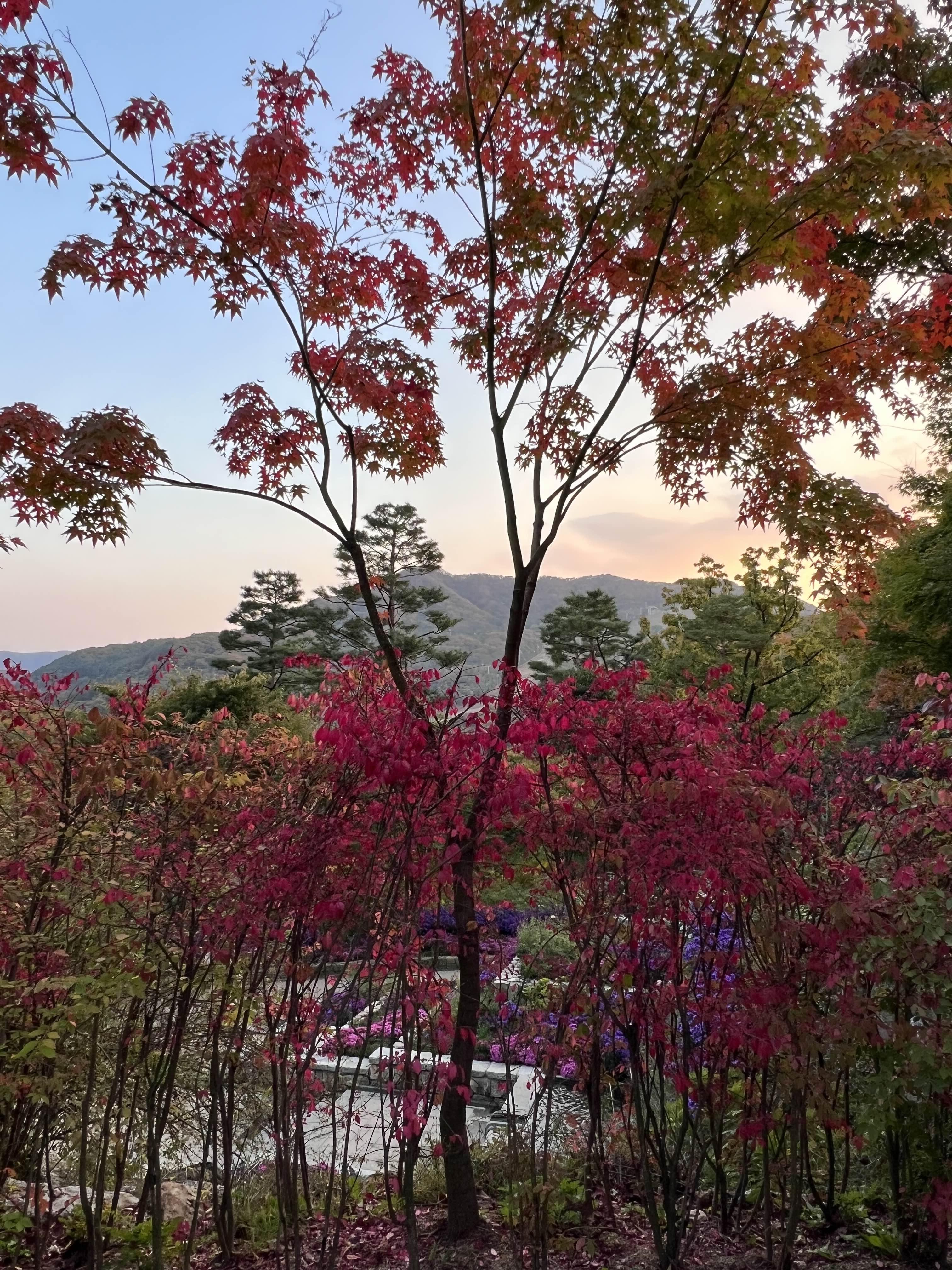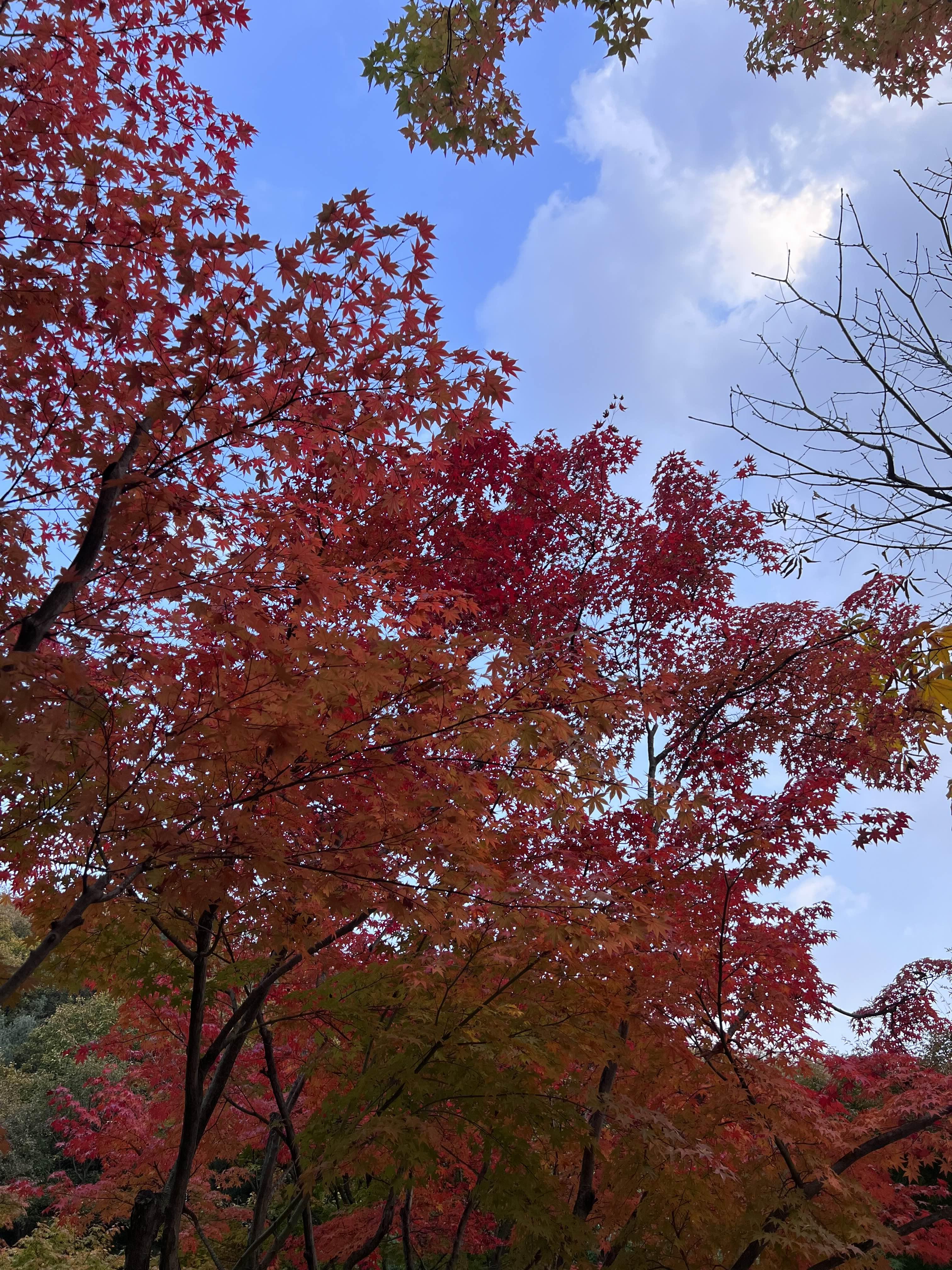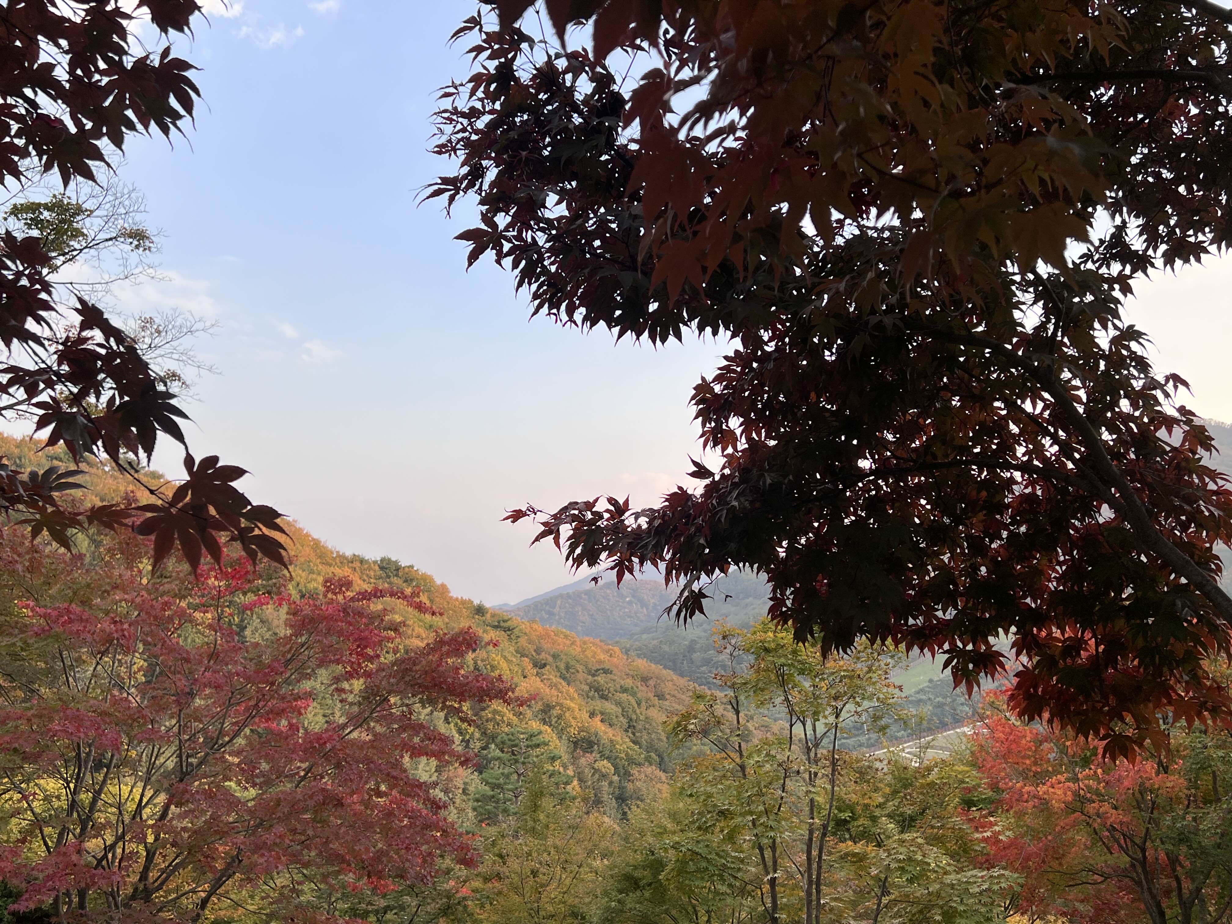 중간중간에도 가을이 있어서 카메라가 저절로 켜졌습니다. 맑은 하늘에 단풍을 보는 게 정말 귀중하게 느껴졌습니다. 노을도 조금 들어서 좋았어요. 노을도 빨갛게 물들었으면 정말 황홀했을 거 같아요! ㅋㅋㅋㅋ