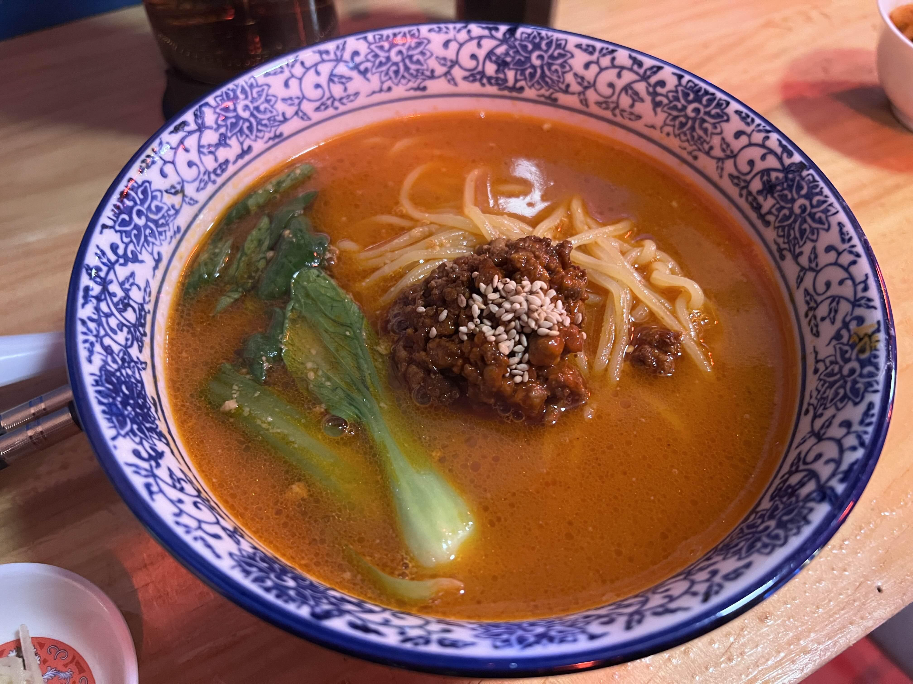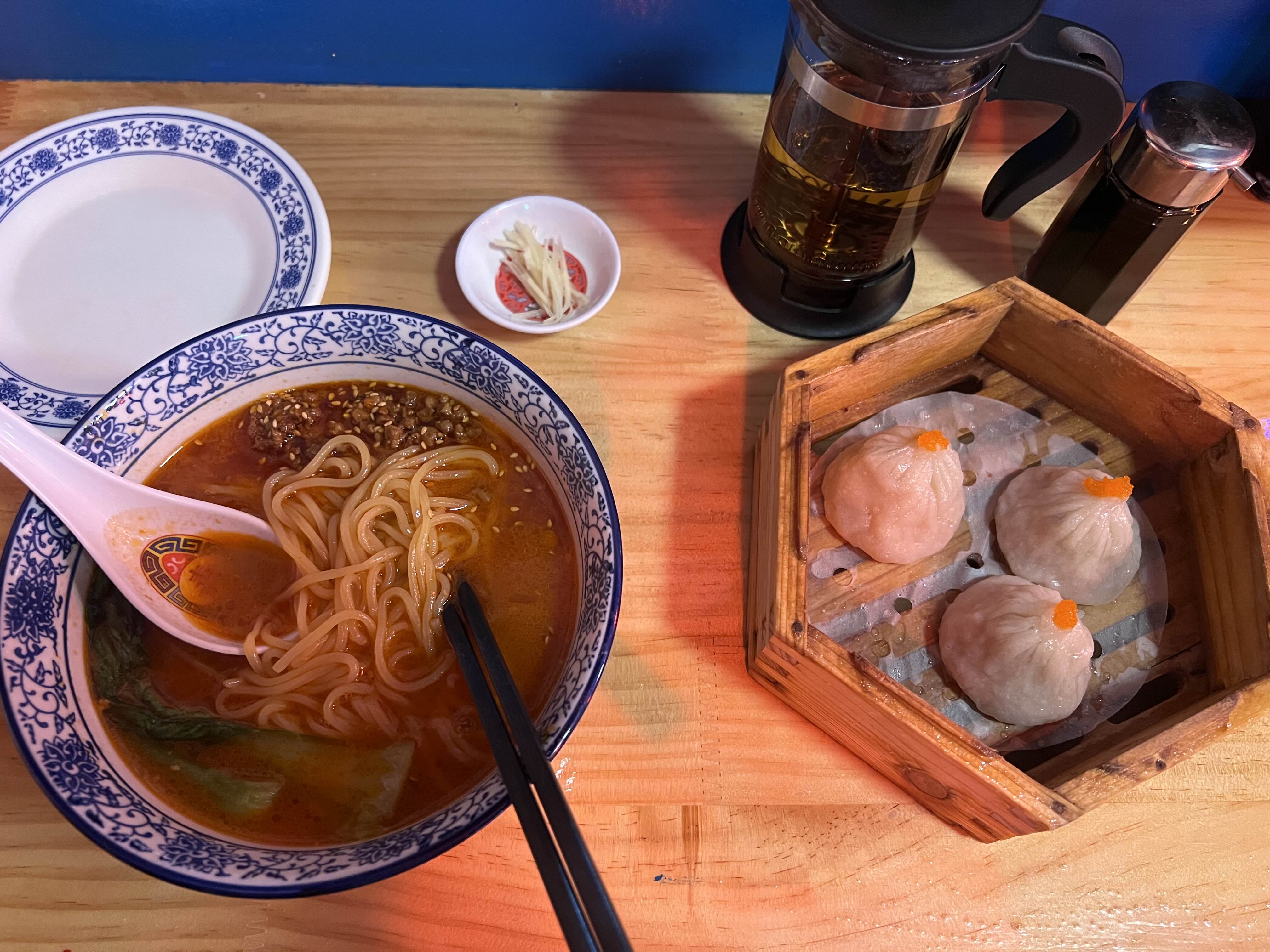 진한 우육면에는 땅콩맛이 났습니다. 가운데 올려져 있는 된장같은 것이 고기 다져진 양념인데 거기에 땅콩향이 나는 듯합니다. 먹을수록 맛있고 오묘했어요. 딤섬도 너무 맛있었는데 3p에 5,000원이라 괜찮았어요. 다른 딤섬은 7,000원 정도 해서 약간은 비싸다고 생각할 수 있어요. 그래서 적당한 가격의 소룡포가 딱 좋은 것 같아요! 식사와 같이 먹기에 좋아서 소룡포 추천드립니다.