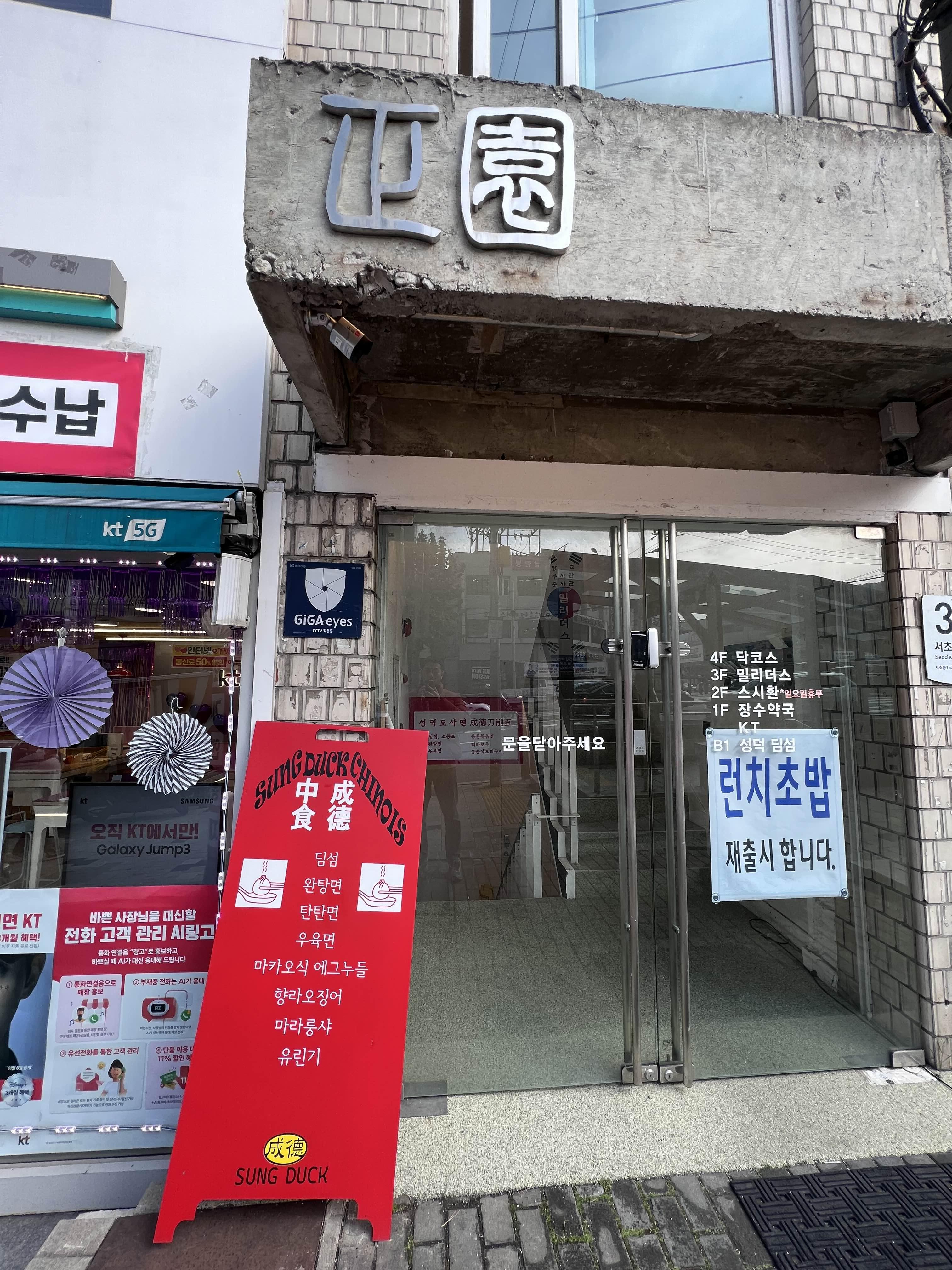 갑자기 날씨가 추워지면서 몸을 녹일 수 있는 따듯한 국물과 따듯한 음식이 마구 당기더라고요. 그래서 점심에 무엇을 먹을까 하다가 딤섬이 생각났어요. 부담스럽지도 않은데 완탕면도 있으니까 같이 먹으면 될 것 같았죠. 마침 남부터미널쪽에 찾아봤는데 성덕이라는 곳이 있었습니다. 지나가다가 못 본 것 같은데 검색해서 나오길래 한번 가보기로 했습니다. 아마도 생긴 지 얼마 안 된 곳 같아요.
