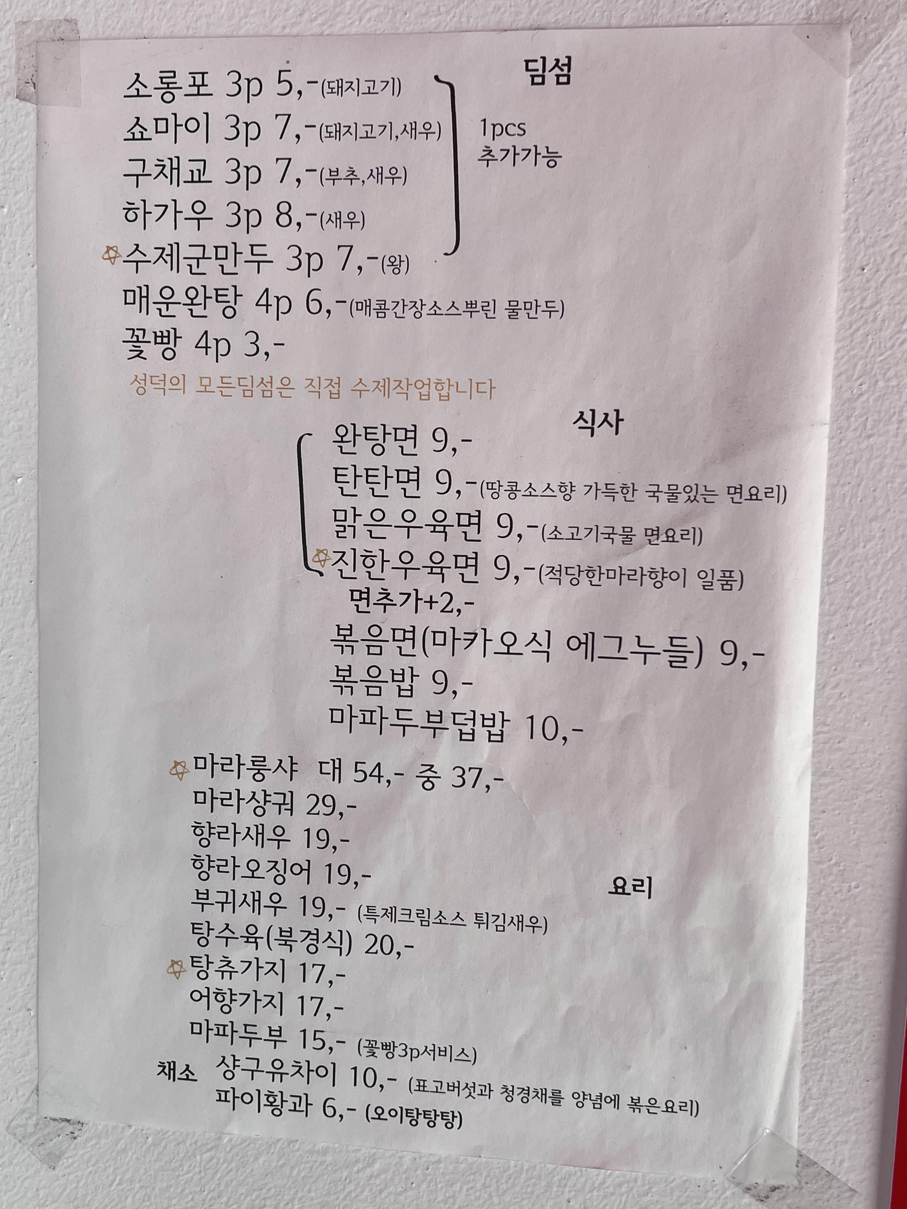 주요메뉴: 딤섬, 완탕면, 우육면, 탄탄면, 유린기