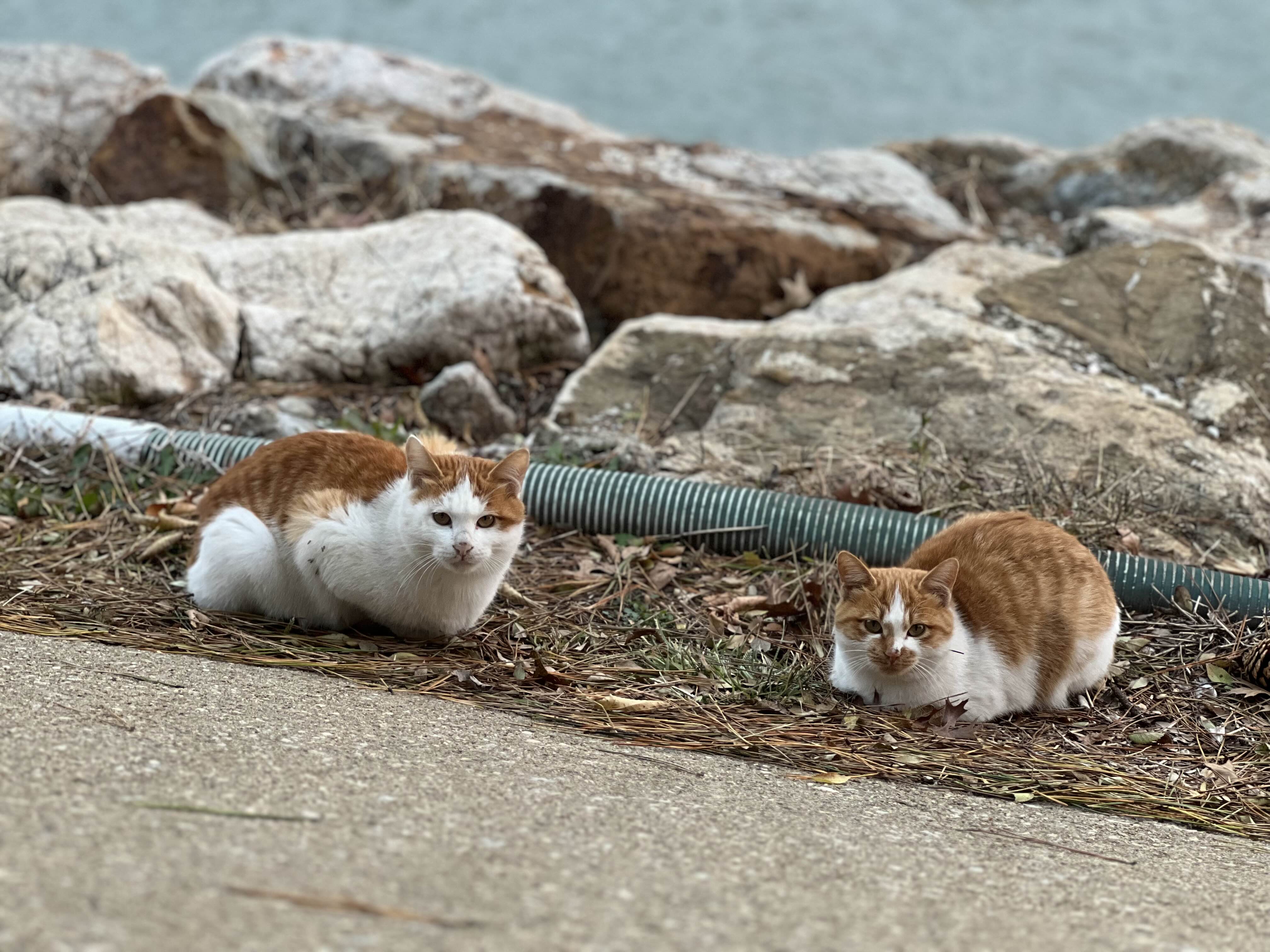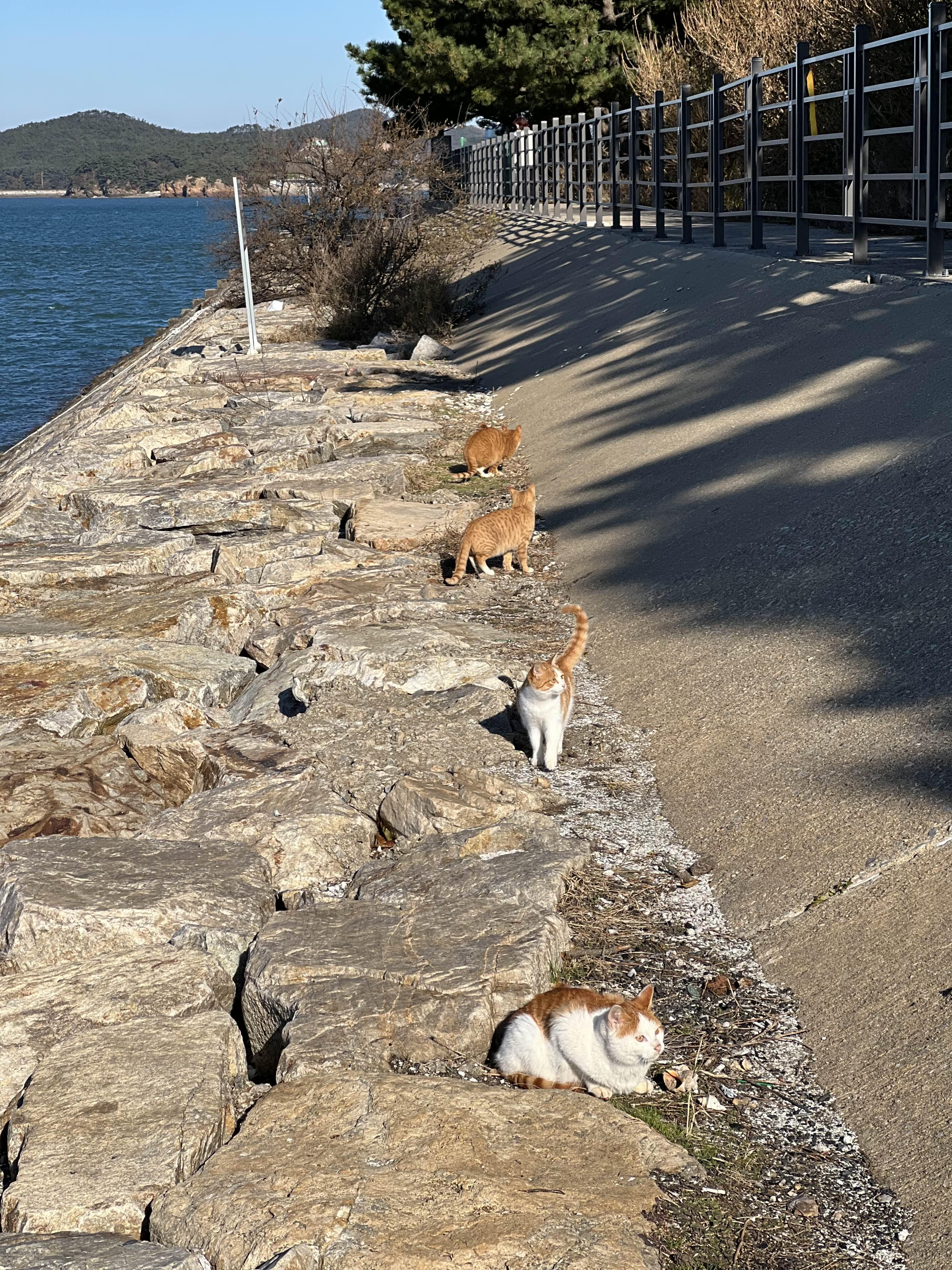 고양이들이 너무 귀여운데 경계심이 커서 가까이에 오지는 않습니다. 사람손을 타지는 않는 것 같습니다. 신기하게도 다 갈색 고양이만 있더라고요.